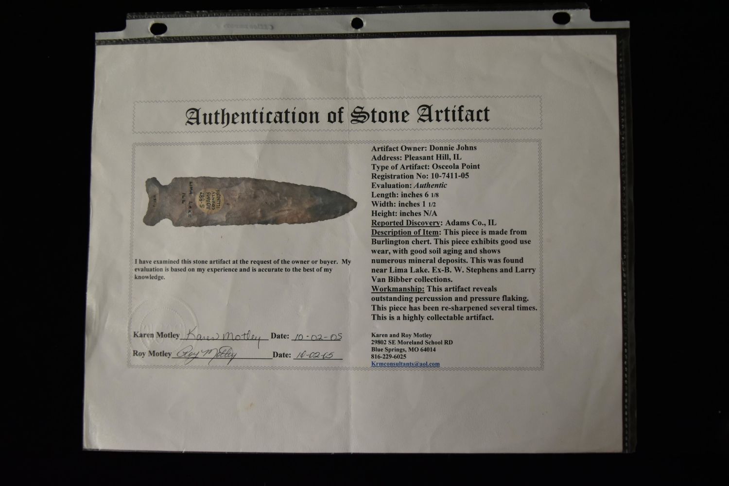 6 1/8" Osceola Point, Motley COA, Adams Co, Illinois