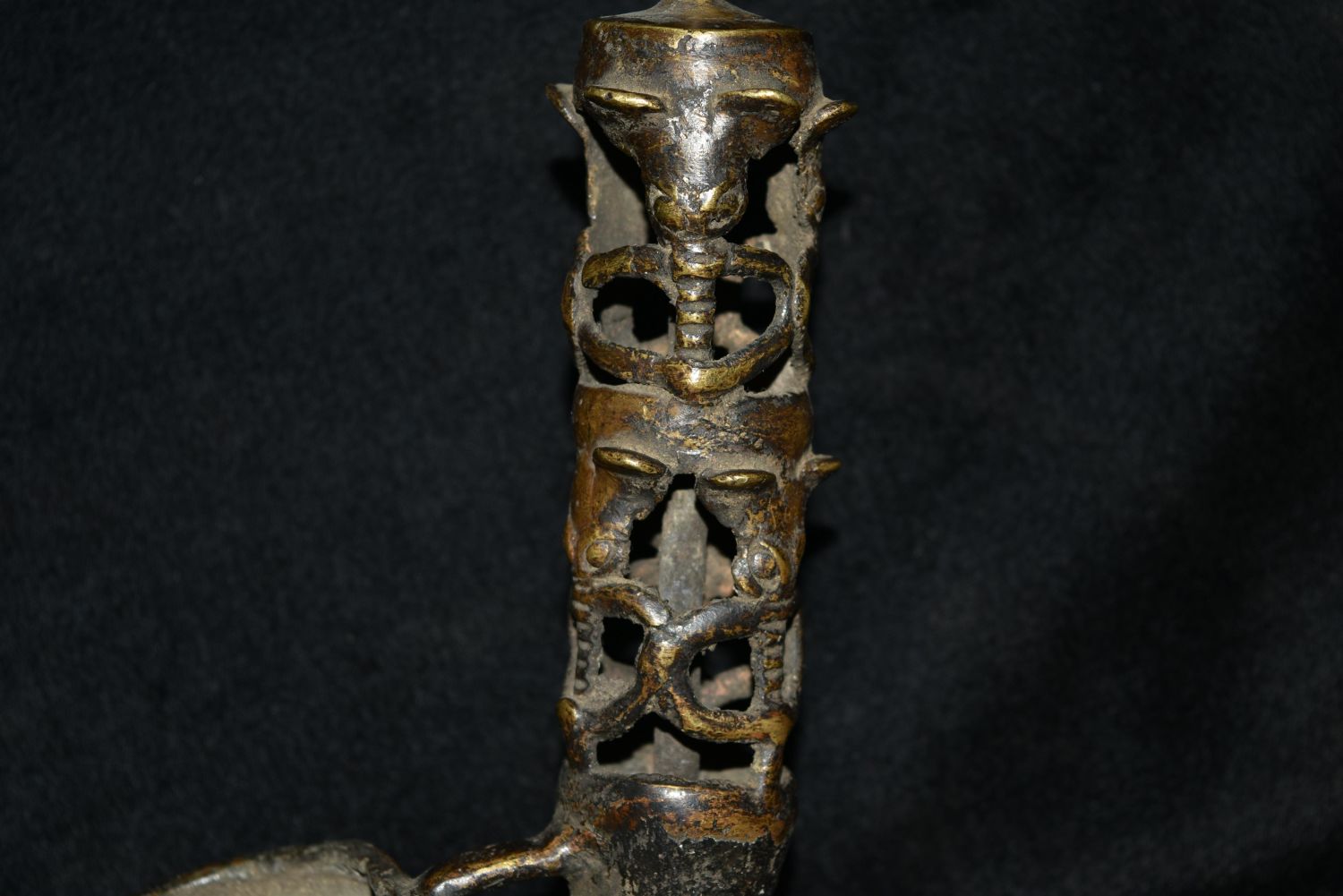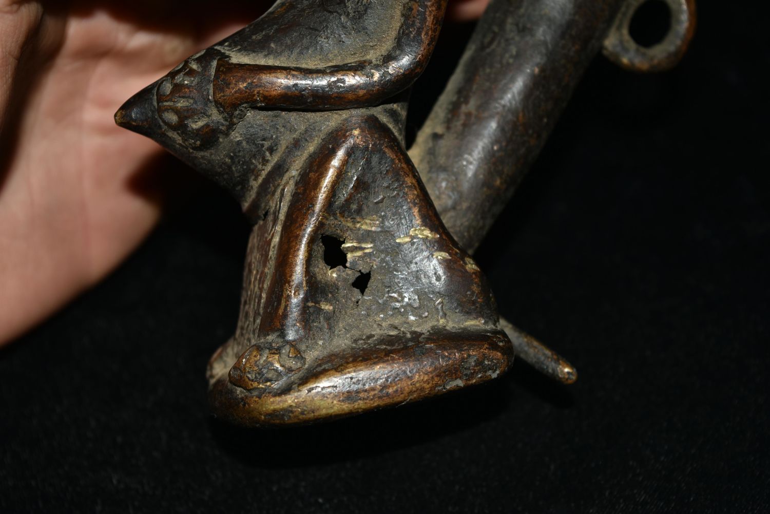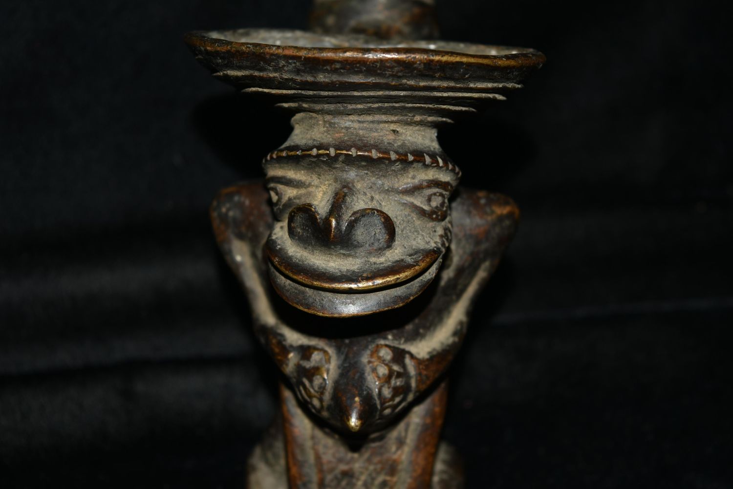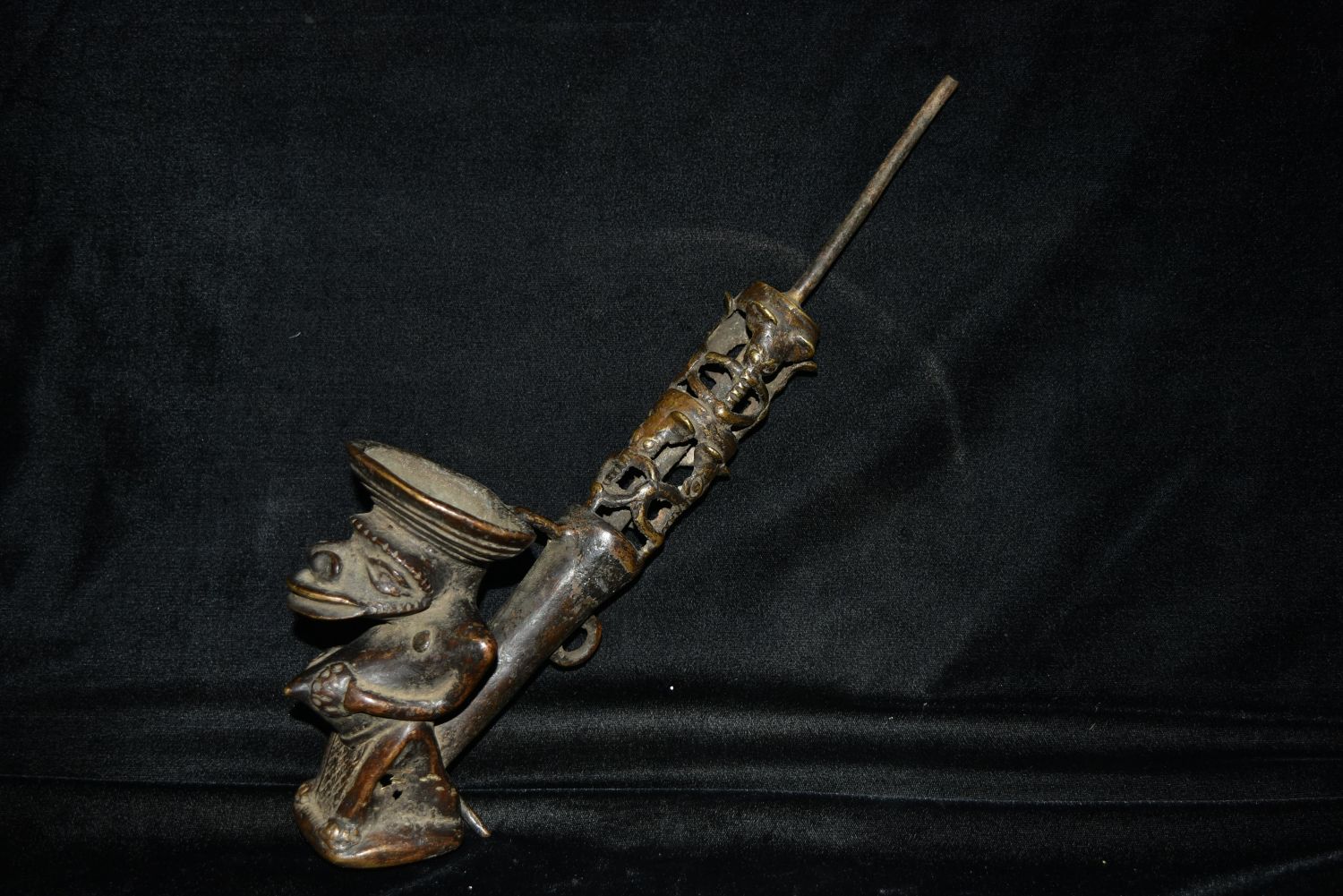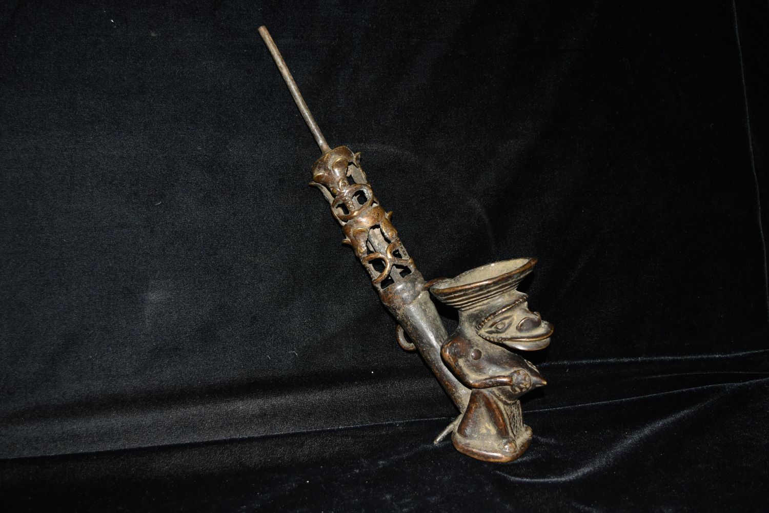 12" Tall 1800s African Asante Brass Effigy Pipe