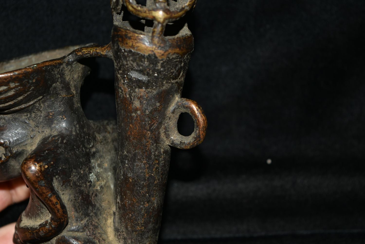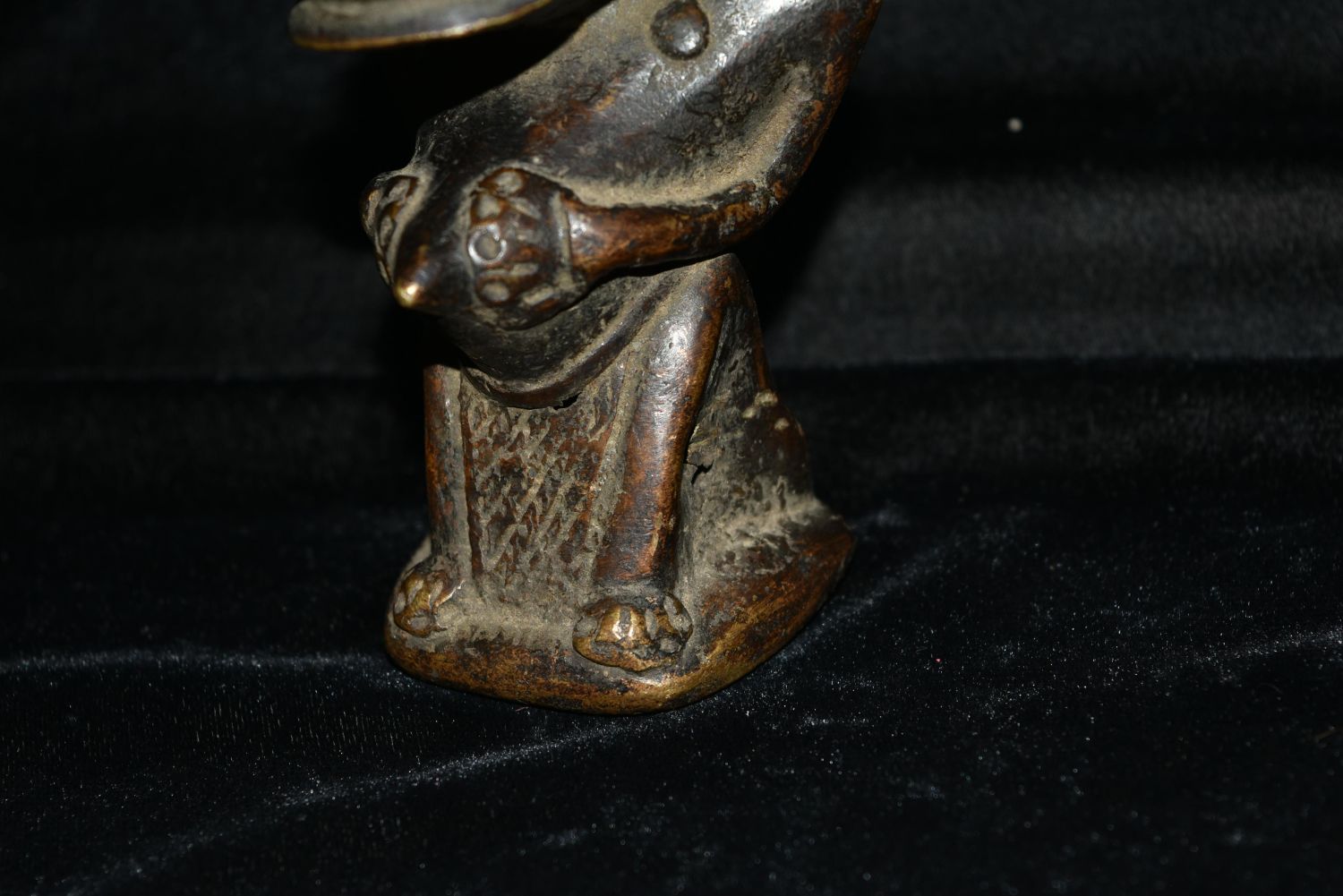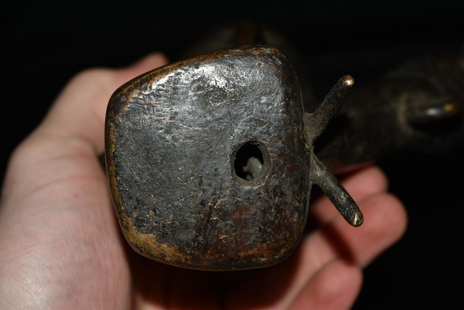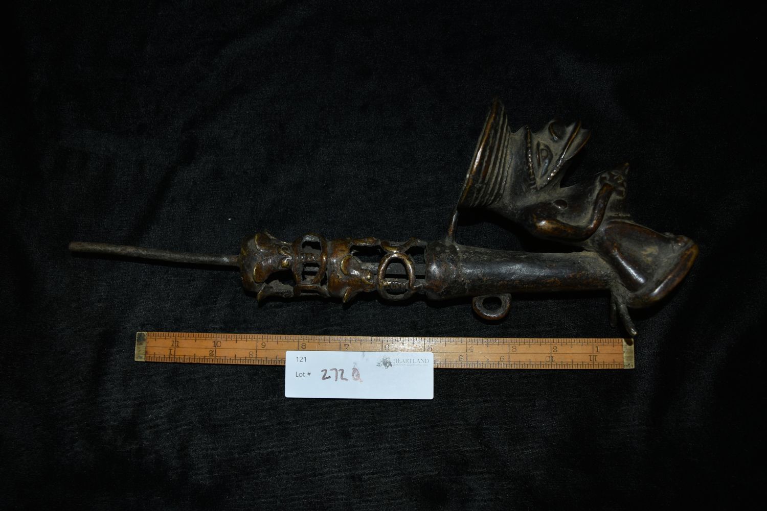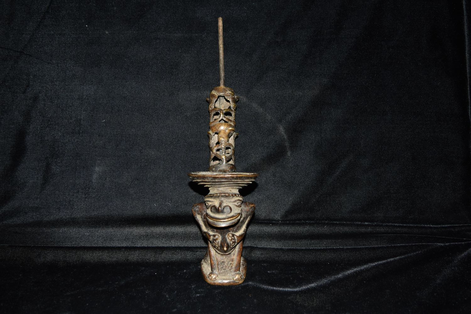 12" Tall 1800s African Asante Brass Effigy Pipe