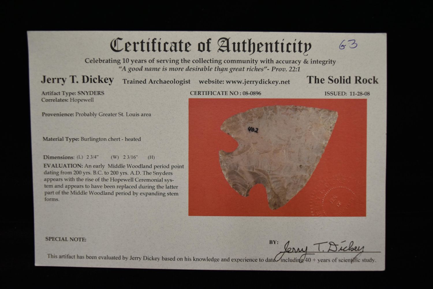 2 3/4" Snyders, Motley COA, St Louis area