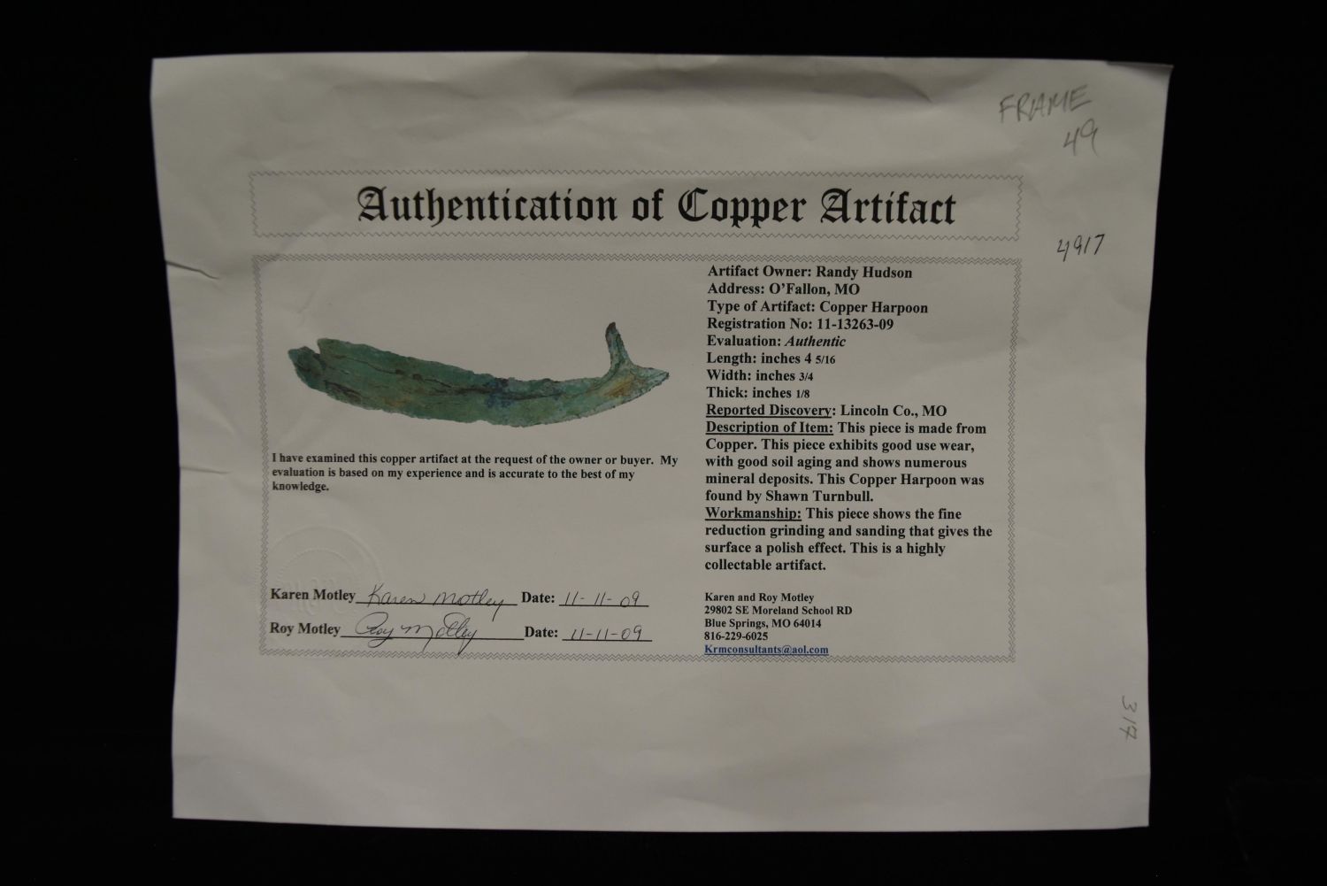 4 5/16" Copper Harpoon, Motley COA, Lincoln Co, Missouri