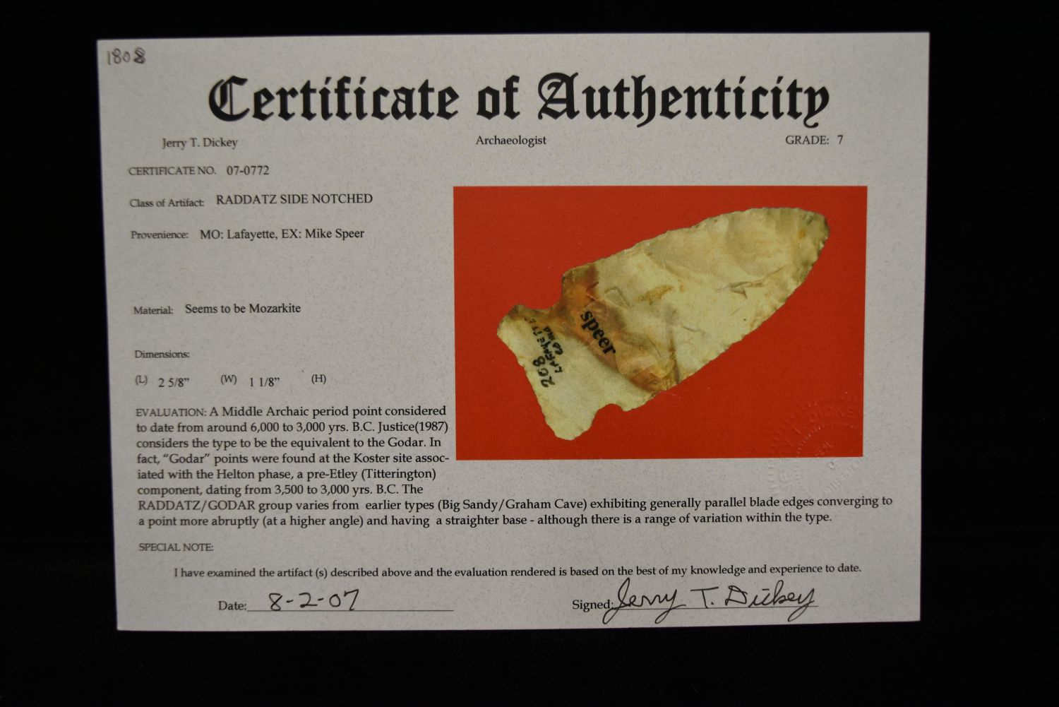 2 5/8" Raddatz Side Notch, Dickey COA, Lafayette, Missouri