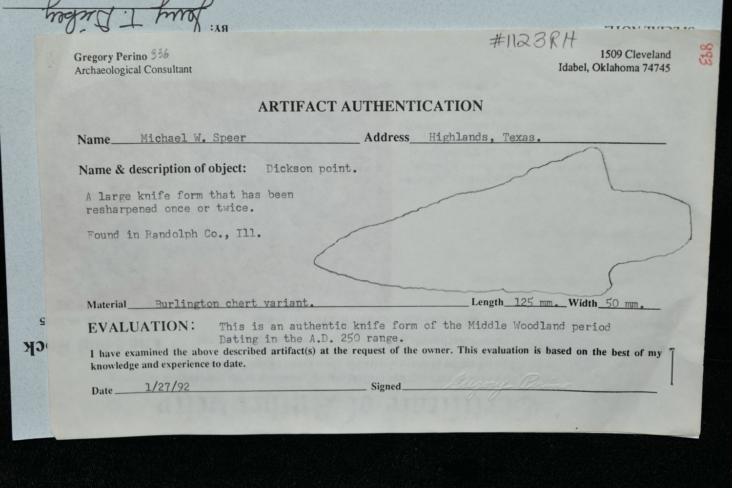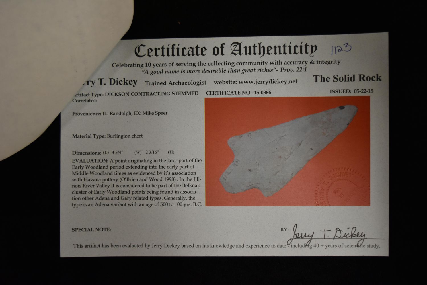 4 3/4" Dickson Point, Dickey COA, Perino COA, Randolph Co, Illinois