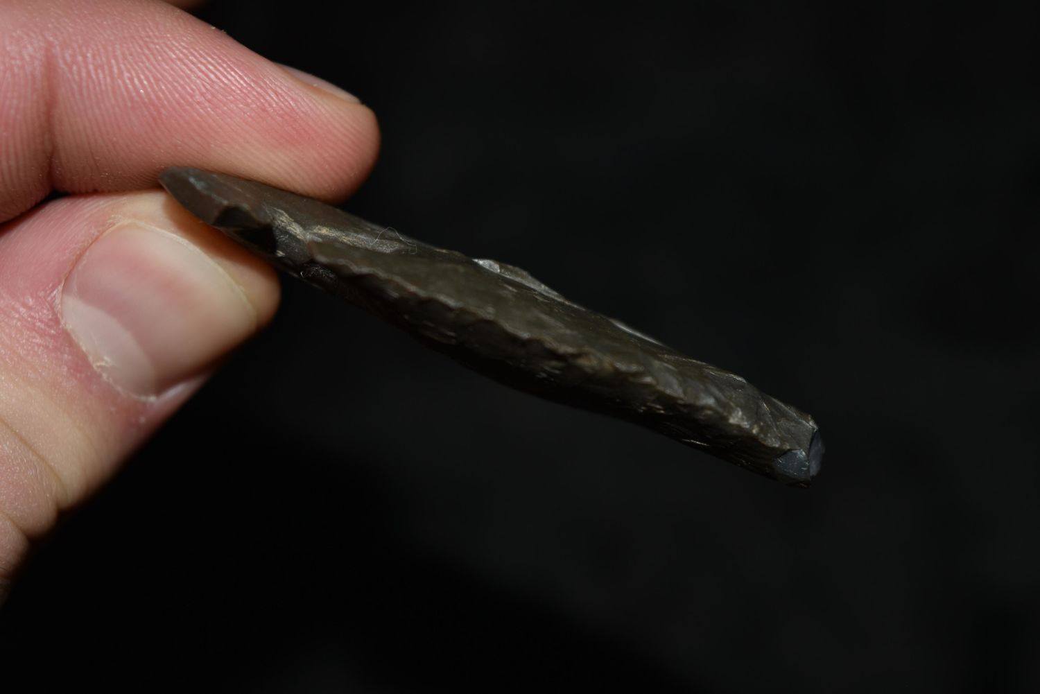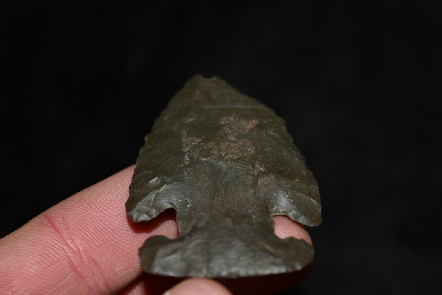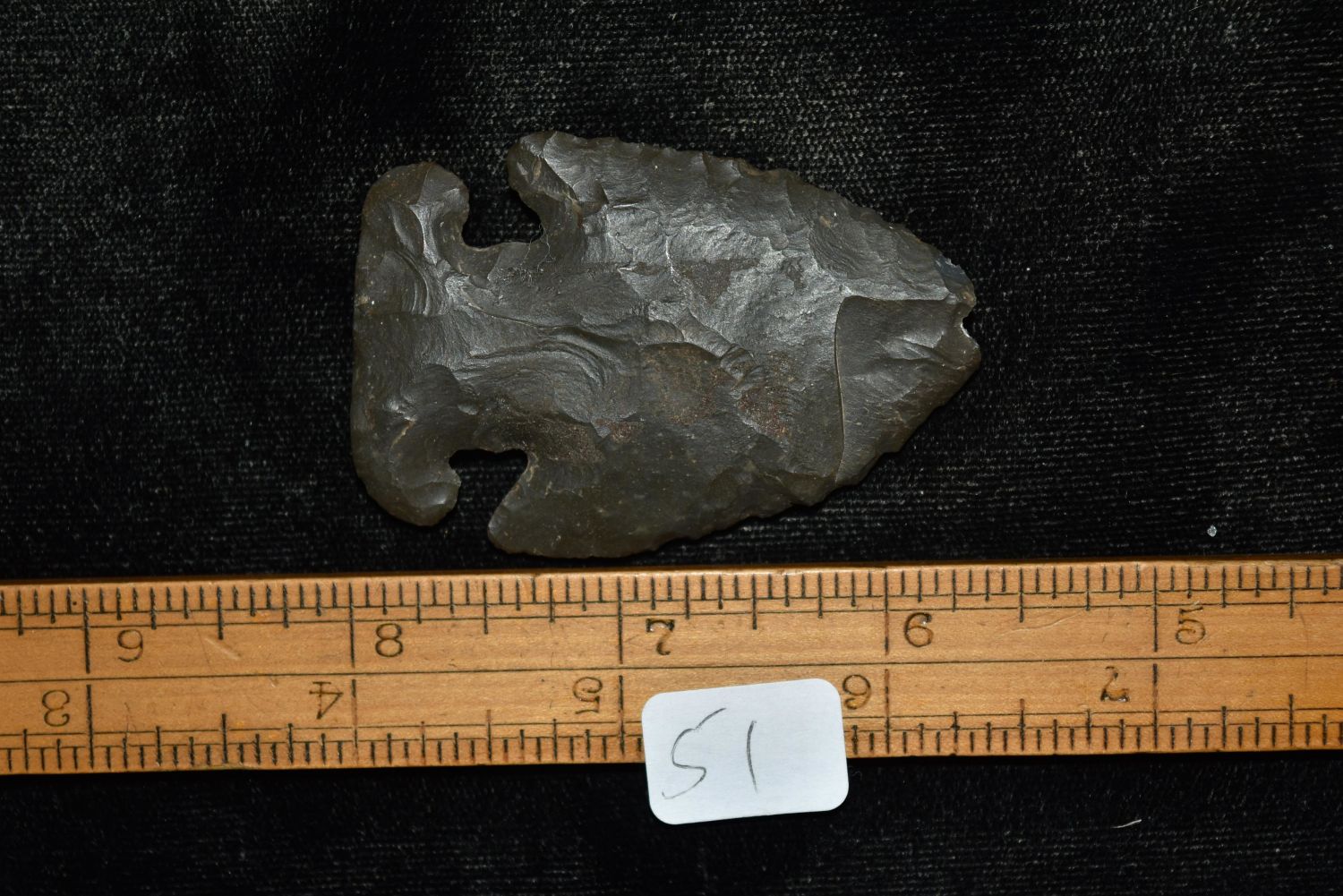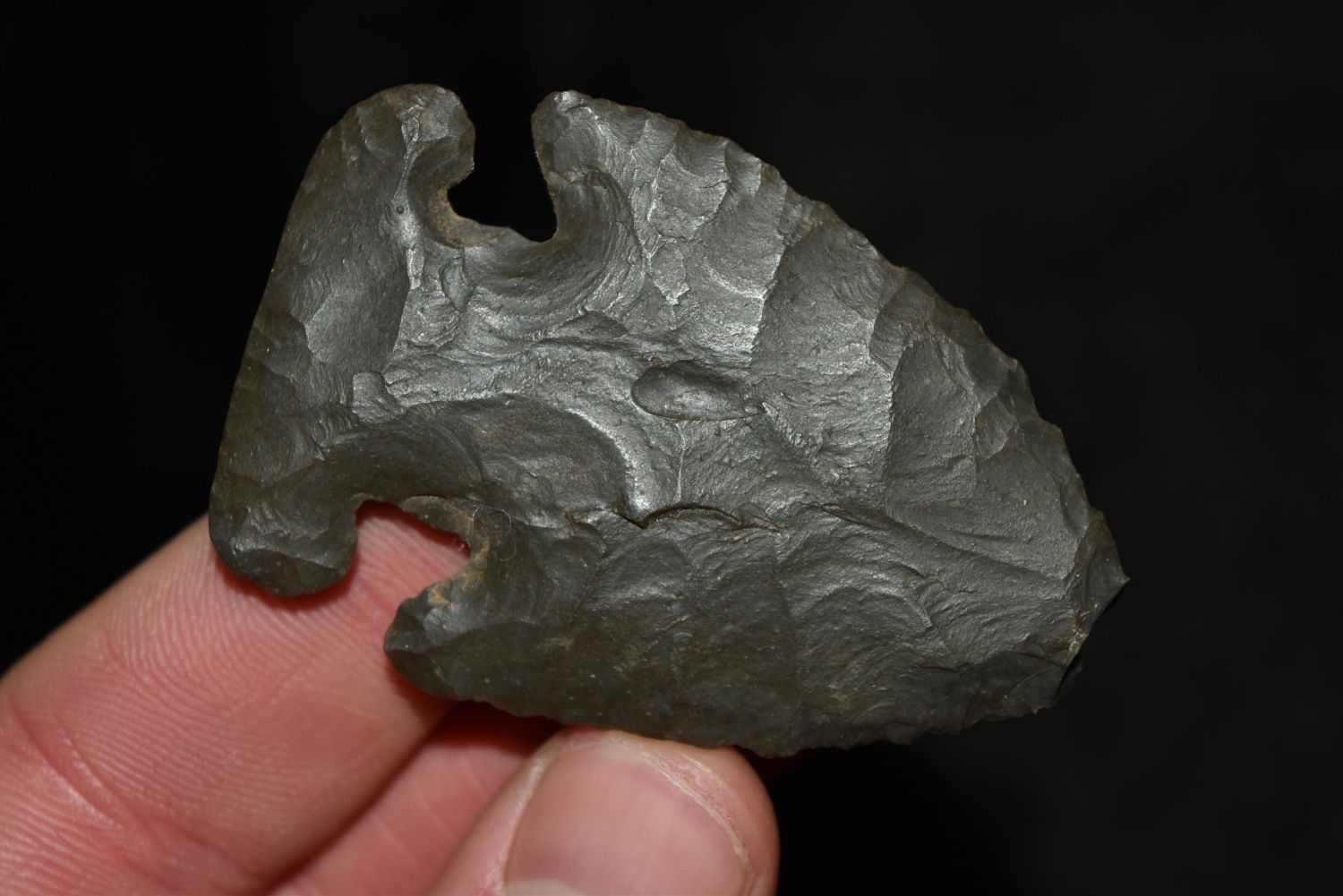 2 3/8" E-Notch Thebes made of Kentucky Blue Chert from Kentucky, Ex Leroy McCoy Collection