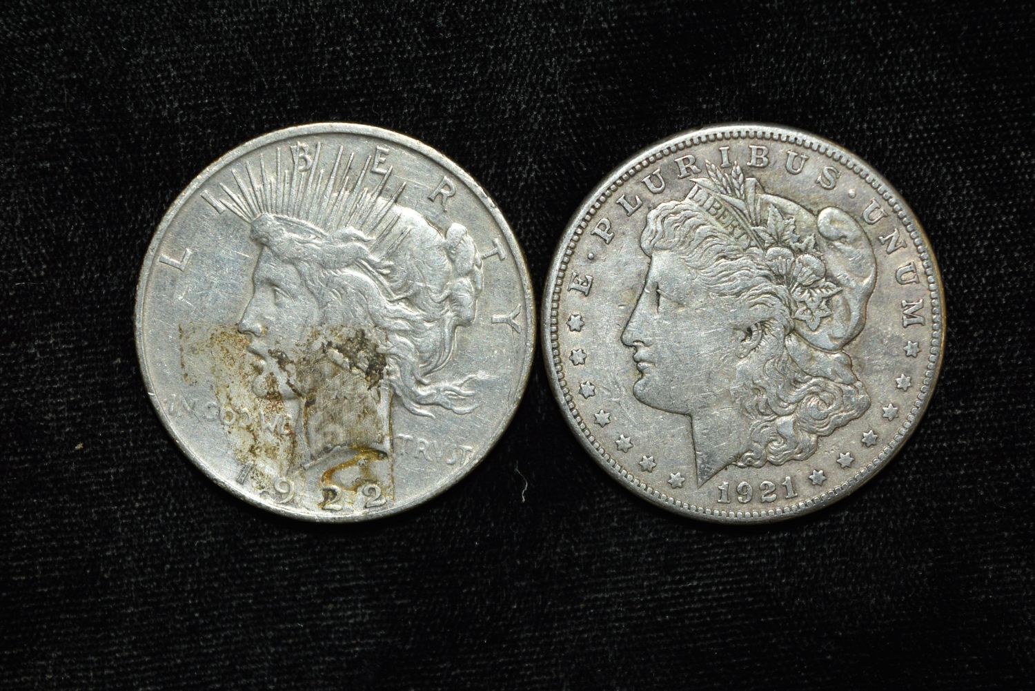 Lot of 2 Silver Dollars, 1921 & 1922, Grade by Photo
