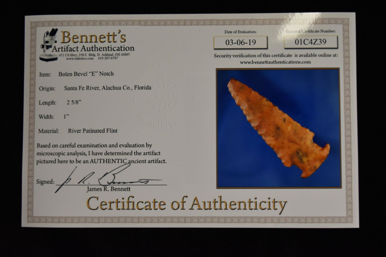 2 5/8" Bolen Bevel E Notch Point, Bennett COA, Alachua Co, Florida