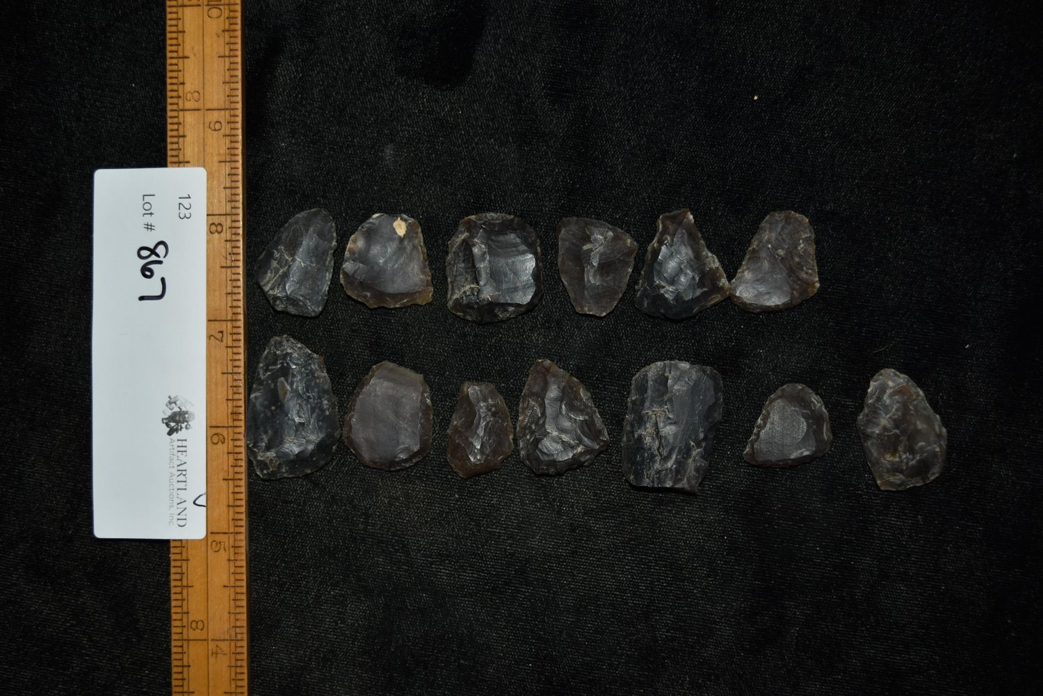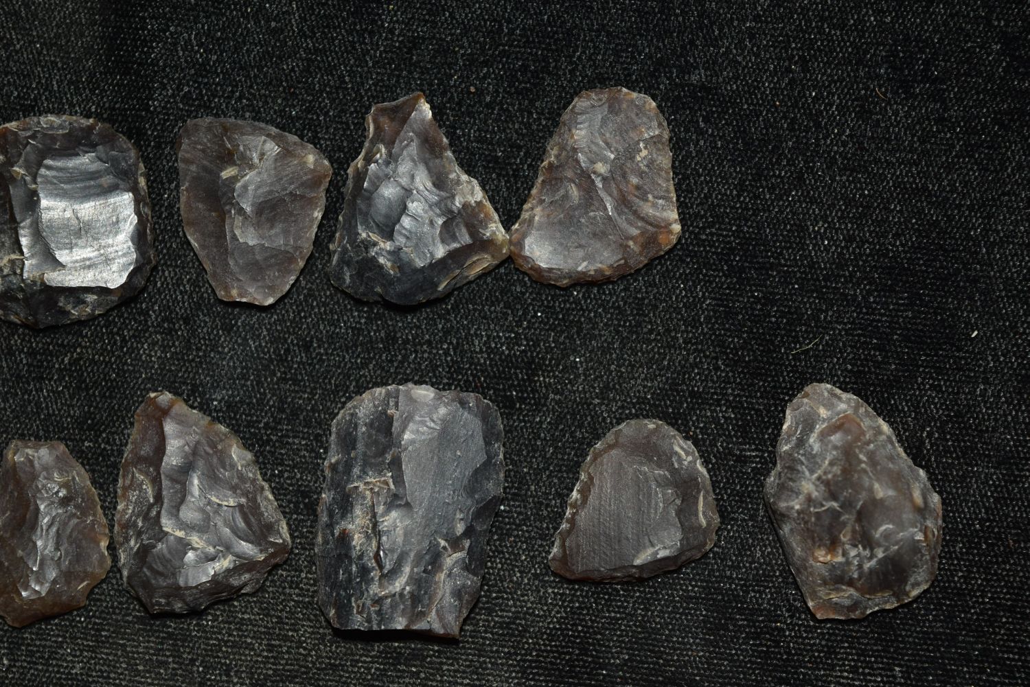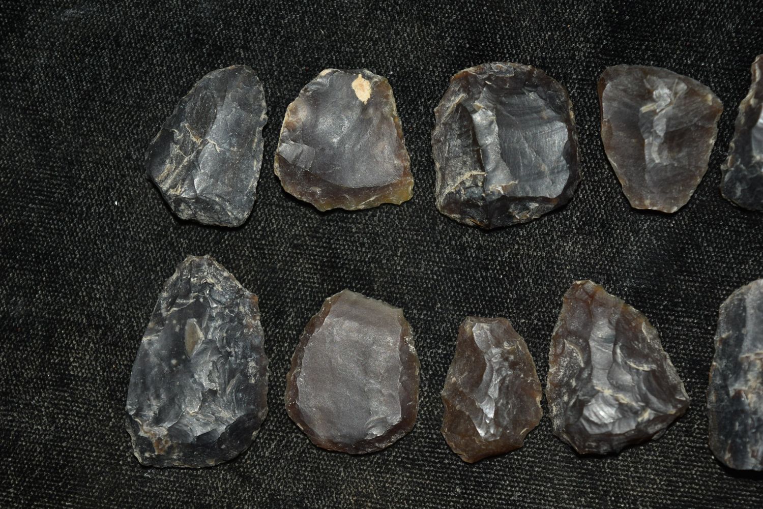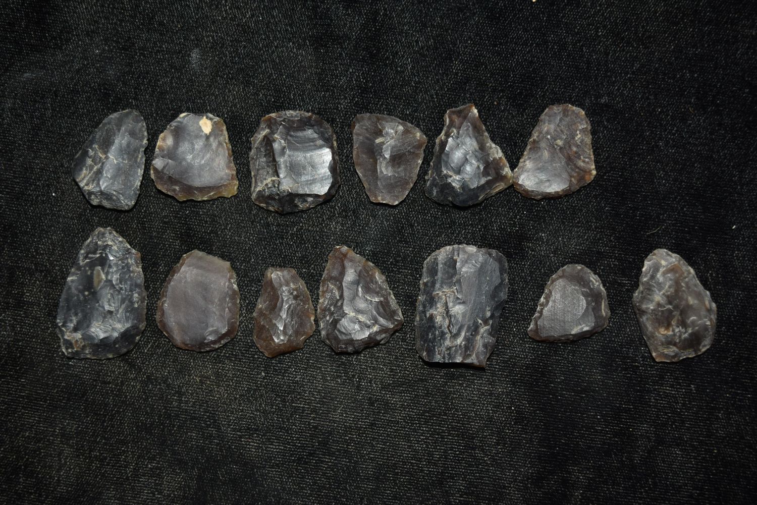 Lot of 13 Knife River Flint Thumb Scrapers, Grant Co, North Dakota