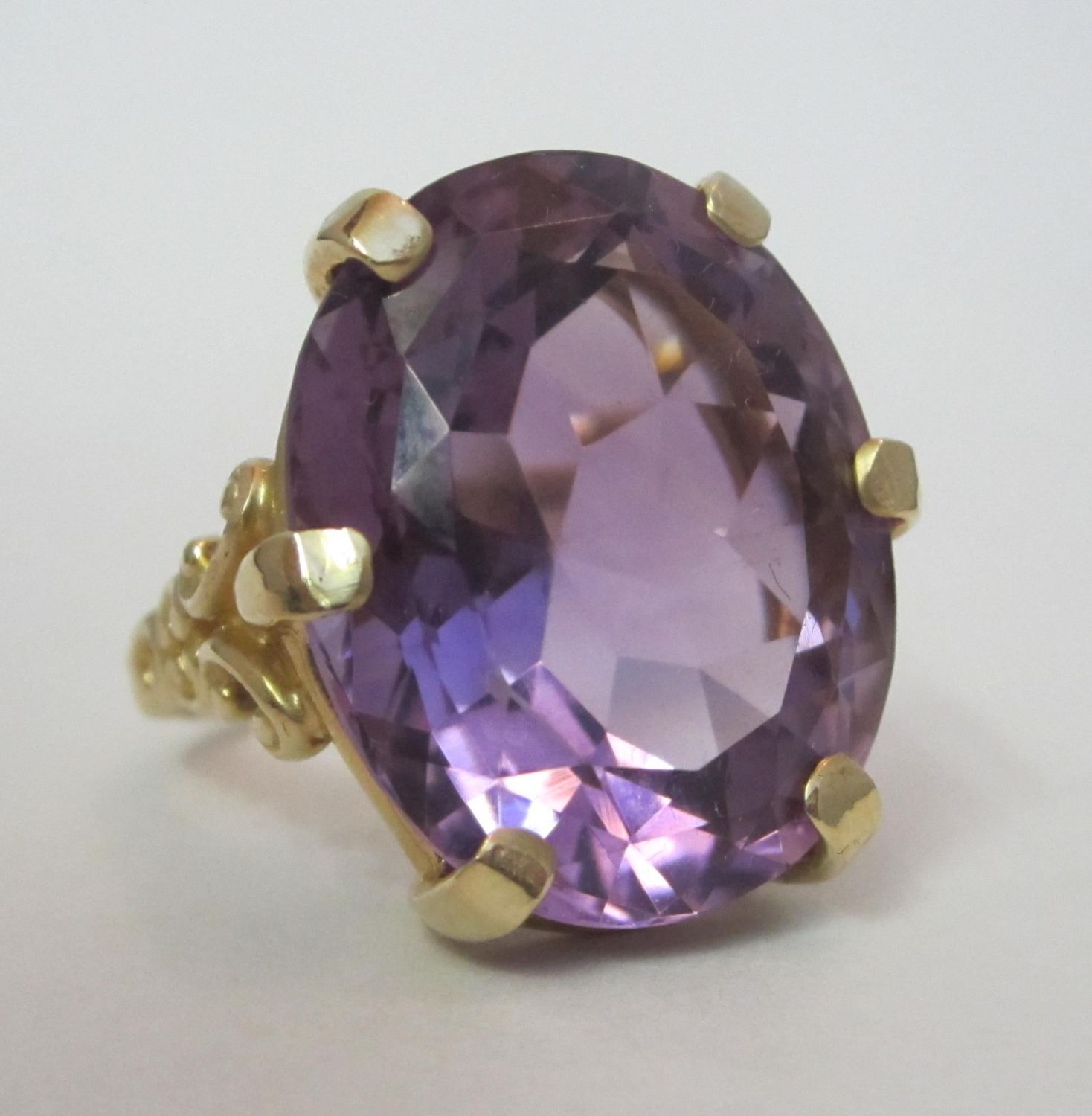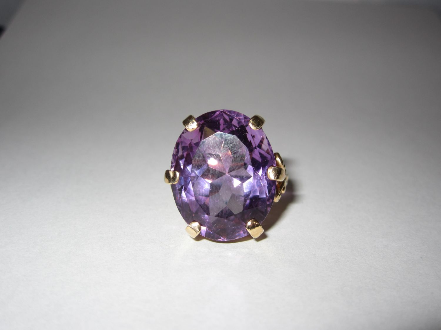 Fine 24 ct. Amethyst 14k Gold Ring, Size 9 1/2