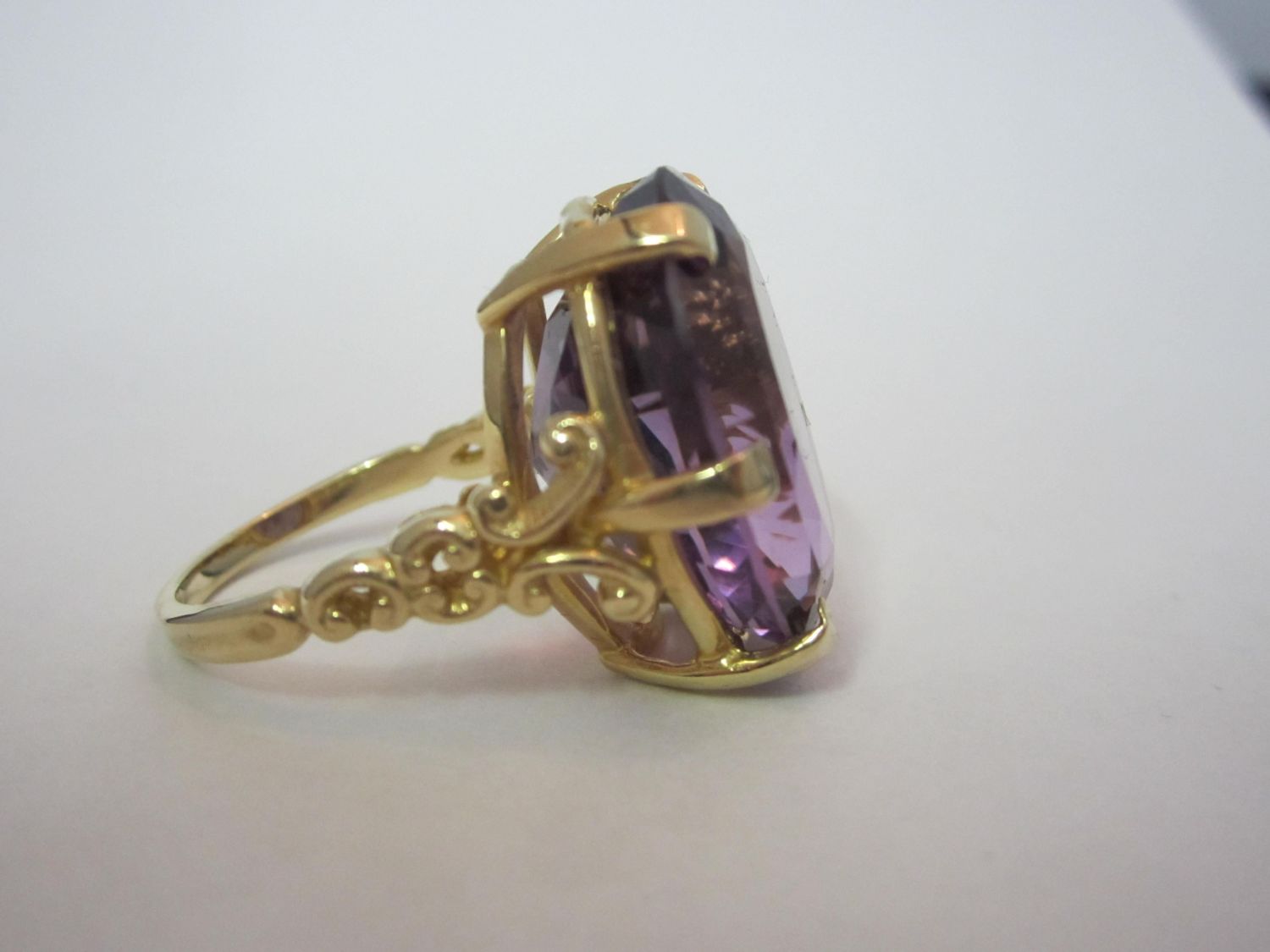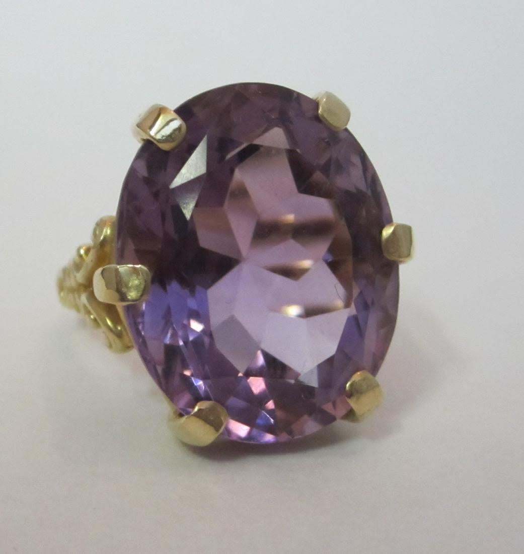 Fine, High End 24 ct. Amethyst 14k Gold Ring, Size 9 1/2