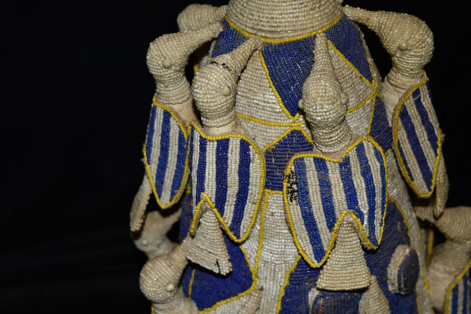17 1/2" African Head dress with Beads & Bird Effigies