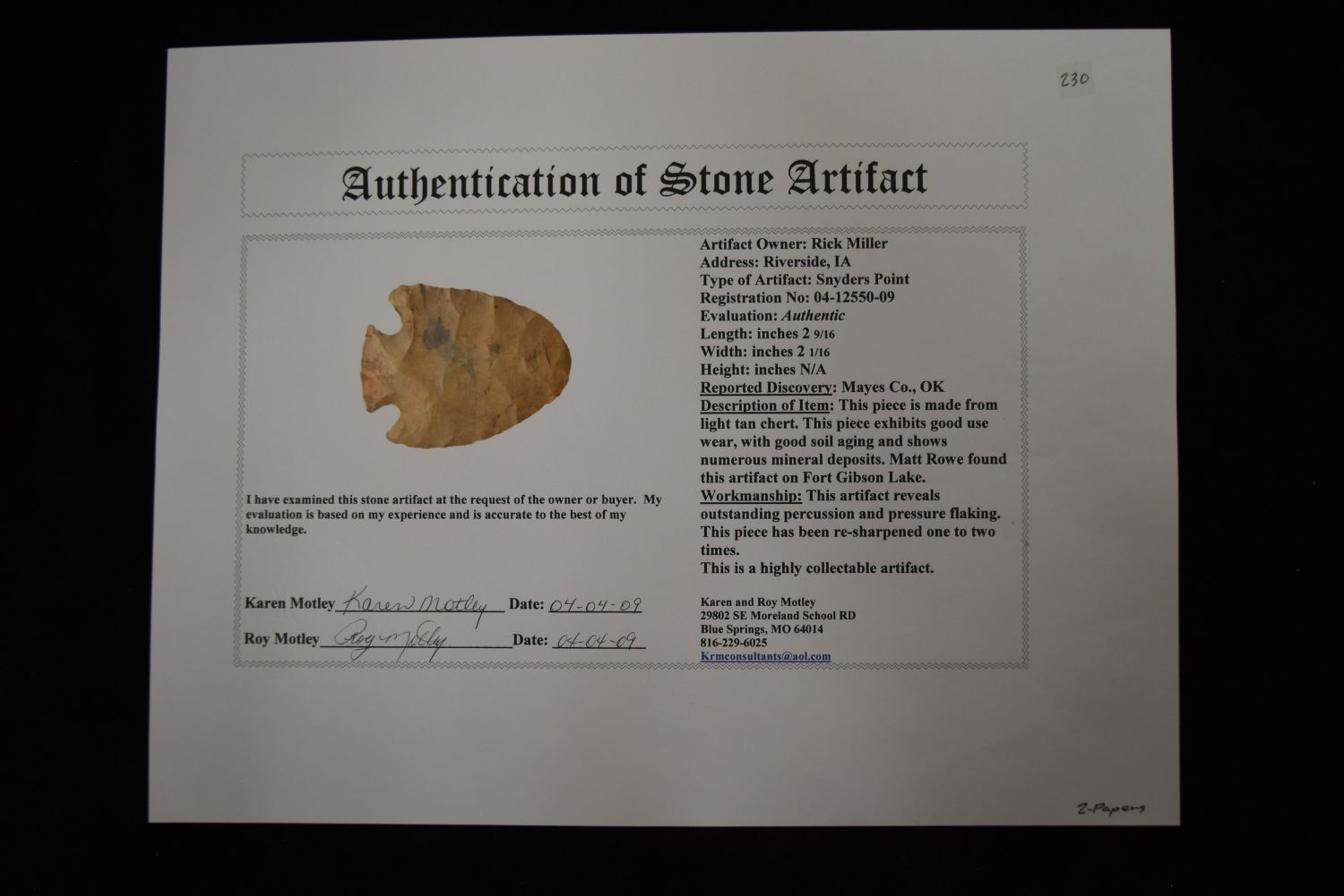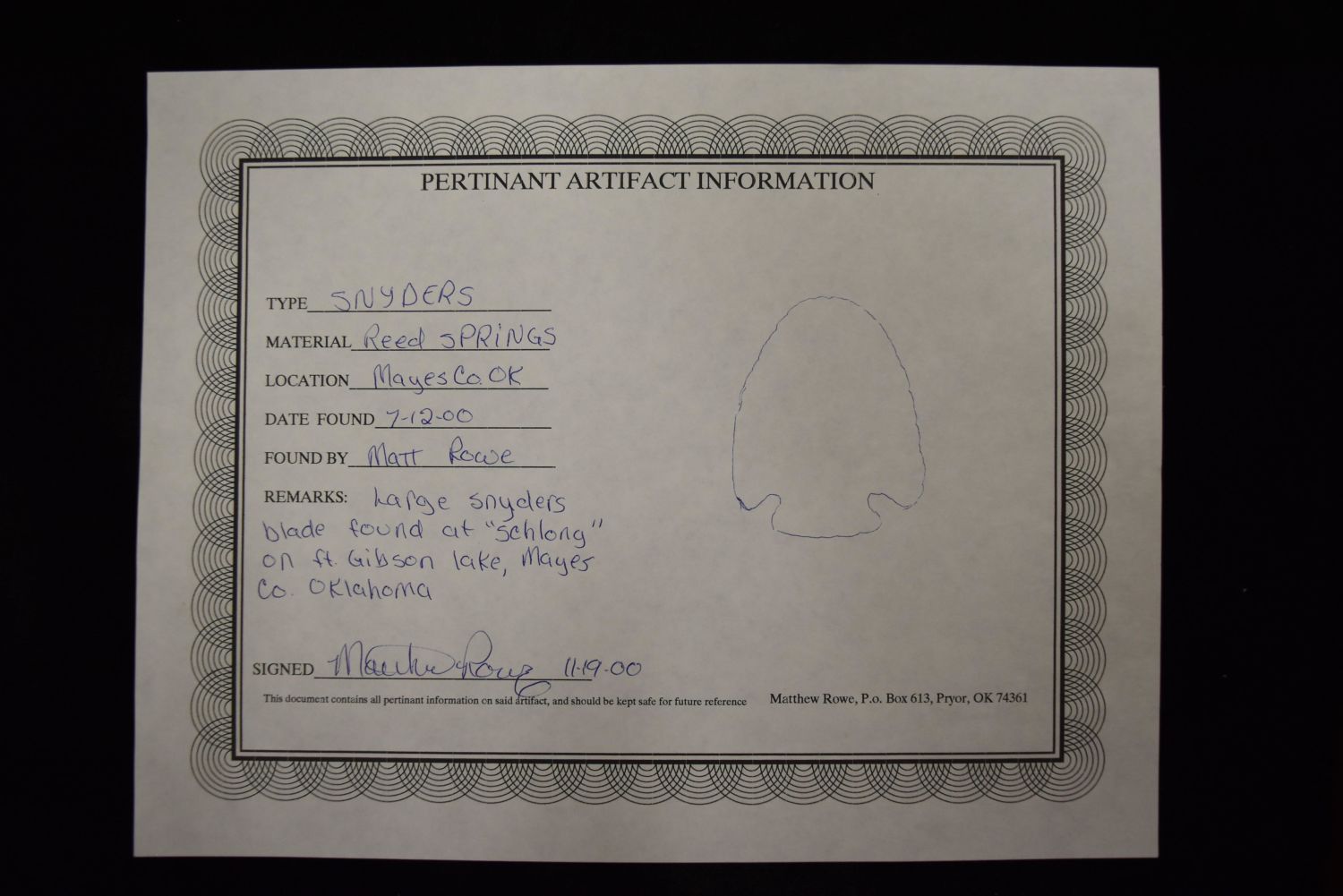 2 9/16" Snyders Point, Motley COA, Rowe COA, Mayes Co,