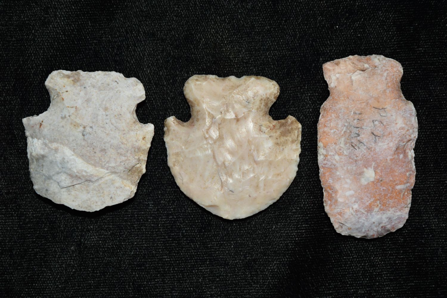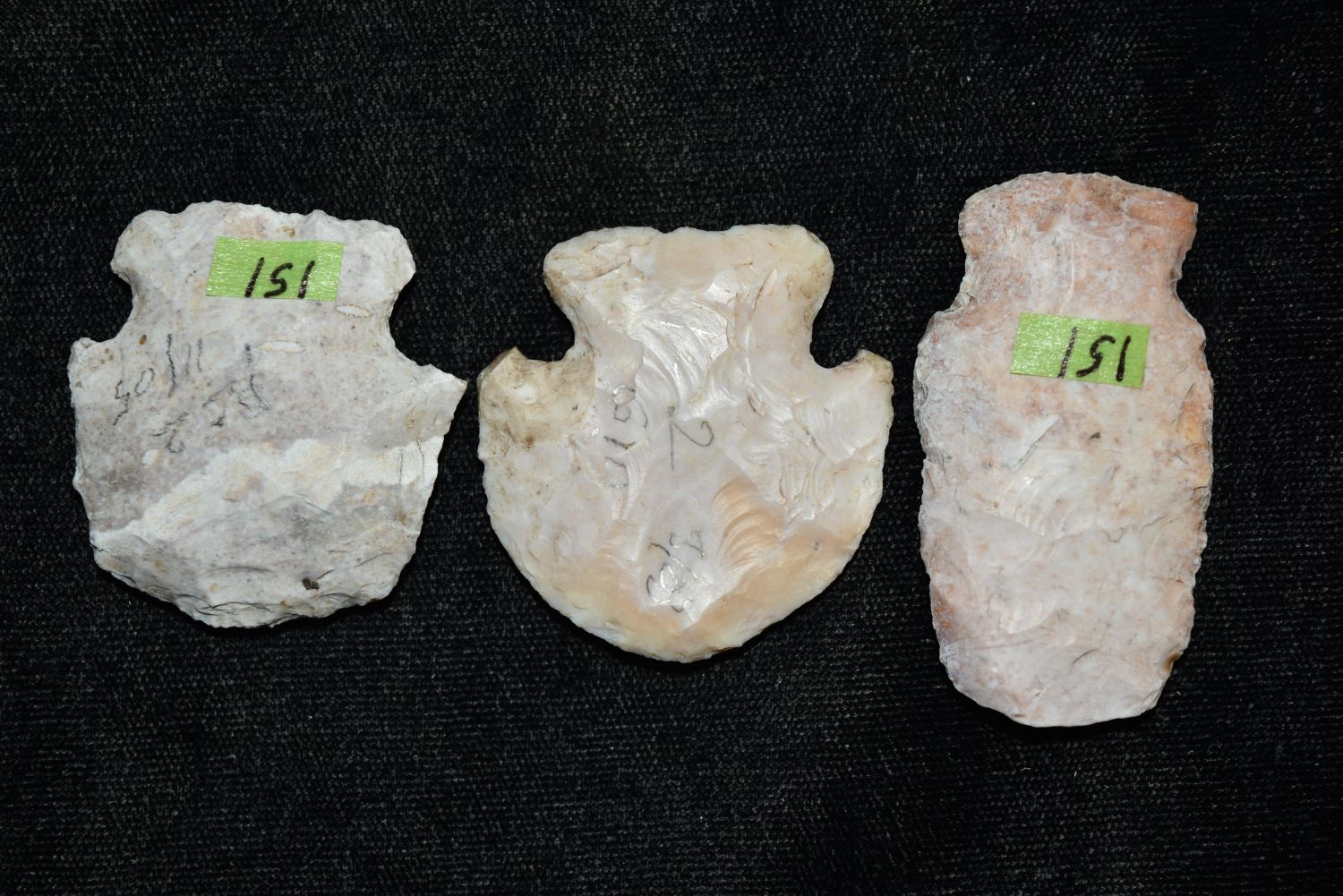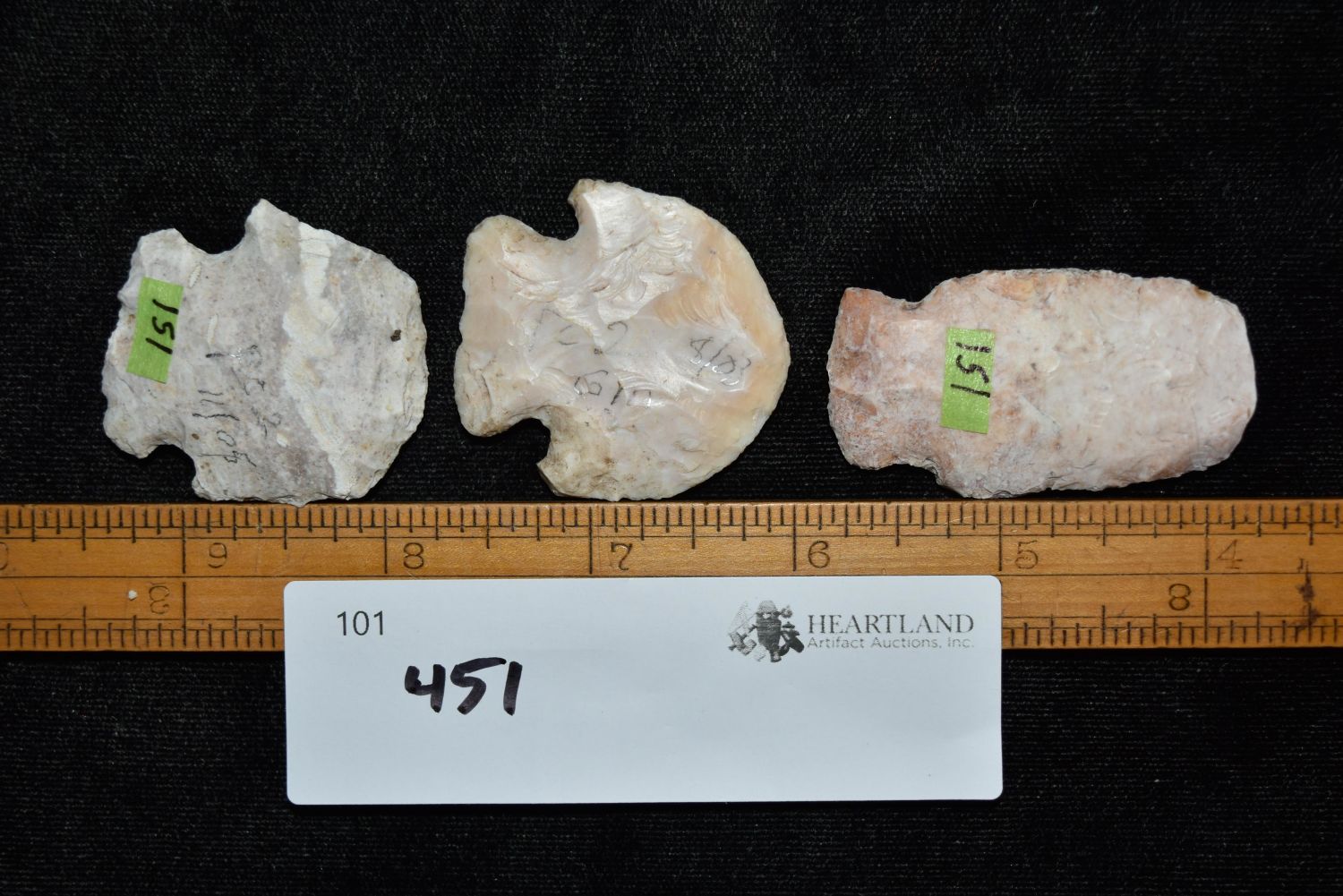 Lot of 3 Hafted Scraper Blunt Tips, Longest 2 1/16", FB Frank Waelder, Marion Co, Missouri