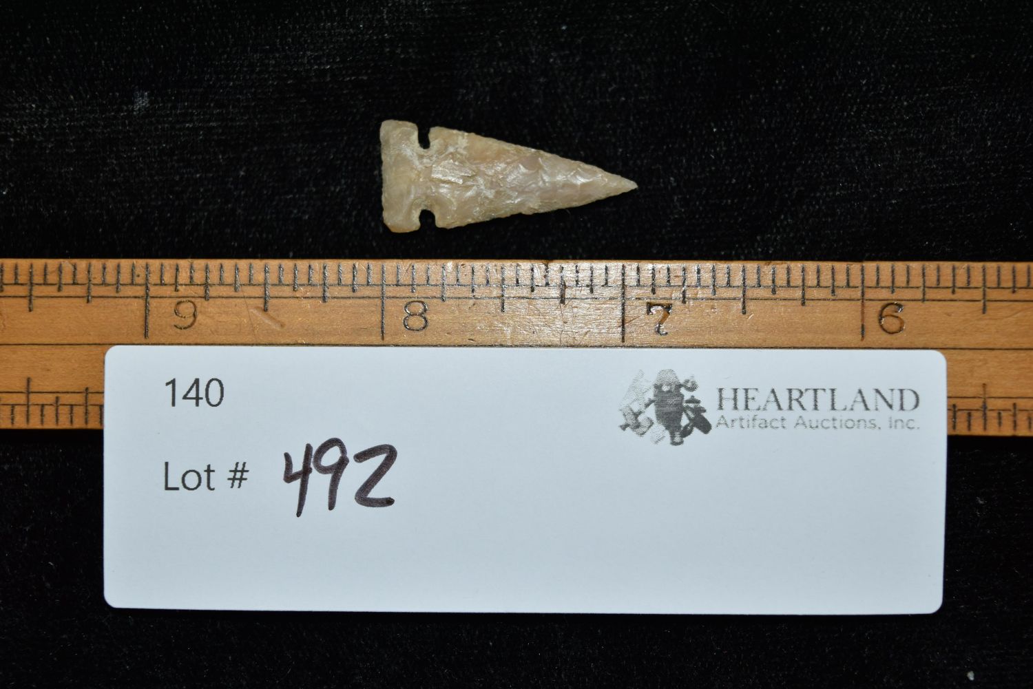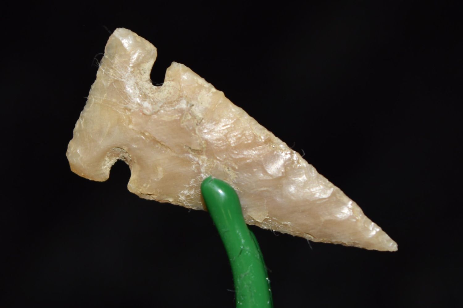 1 1/8" E Notched/Micro Notched Point, Orange Chert, Southern Oregon, Ex Jim Bennett