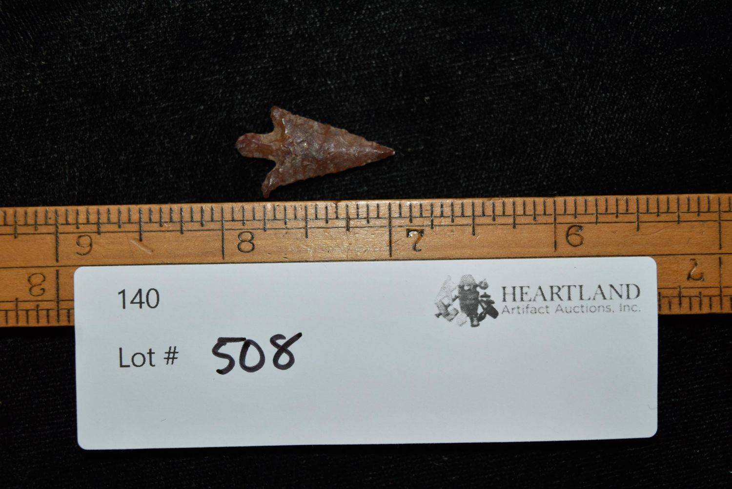 1" Swept Wing Wallula Gap Round Base Point, Jasper/Agate, Columbia River Valley, Oregon, Ex Bishop Family