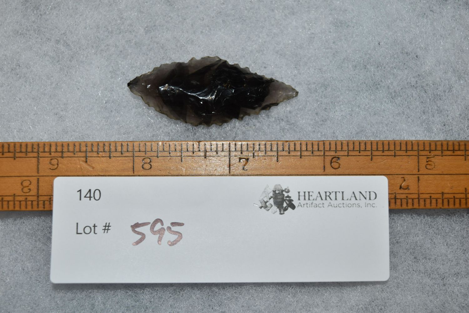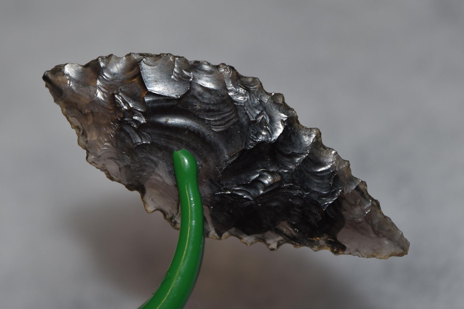 1 7/8" Wahmusa Serrated Point, Obsidian, Christmas Valley Southern, Oregon, Ex Mike Sheppard, Gordy Erspamer