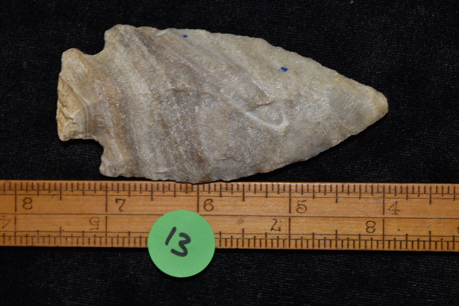 3 1/2″ Quartzite Etley Point, FB Herb Sanders, Douglas Co, Missouri, Native American Arrowhead, Artifact