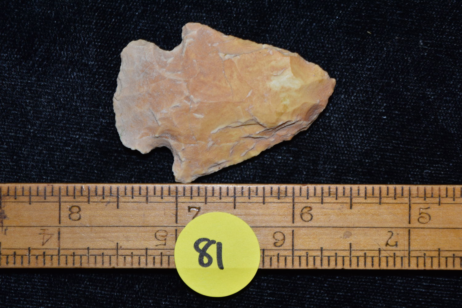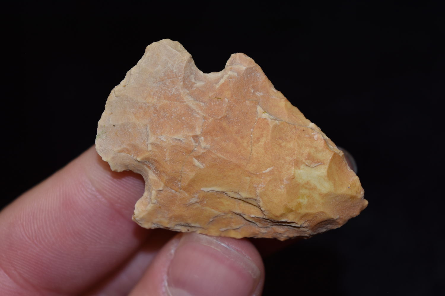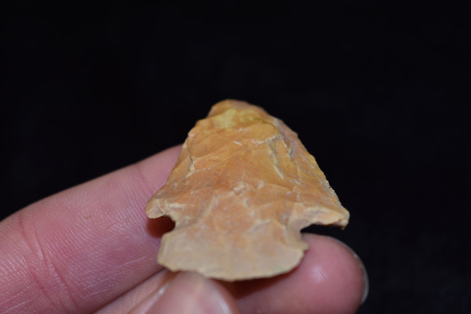 1 7/8″ Colorful Creek Stained Snyders Point, FB Herb Sanders, Douglas Co, Missouri, Native American Arrowhead, Artifact