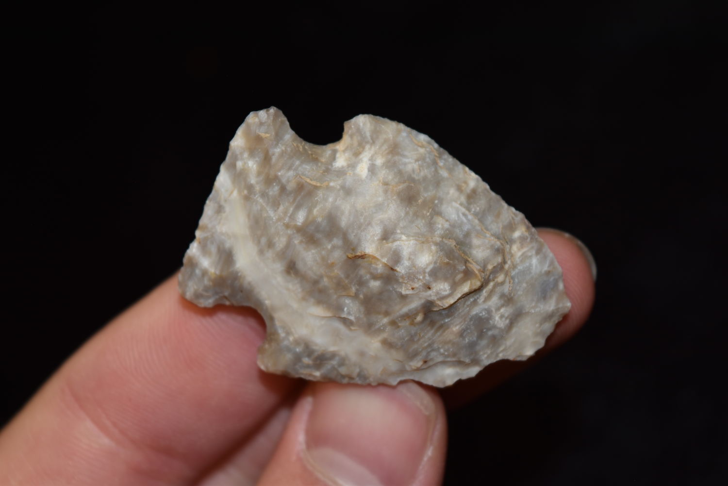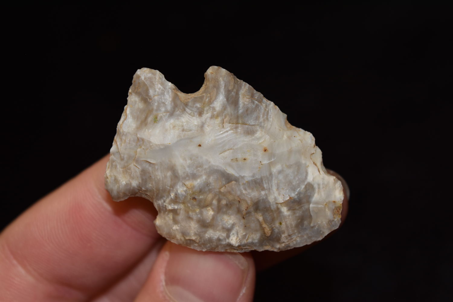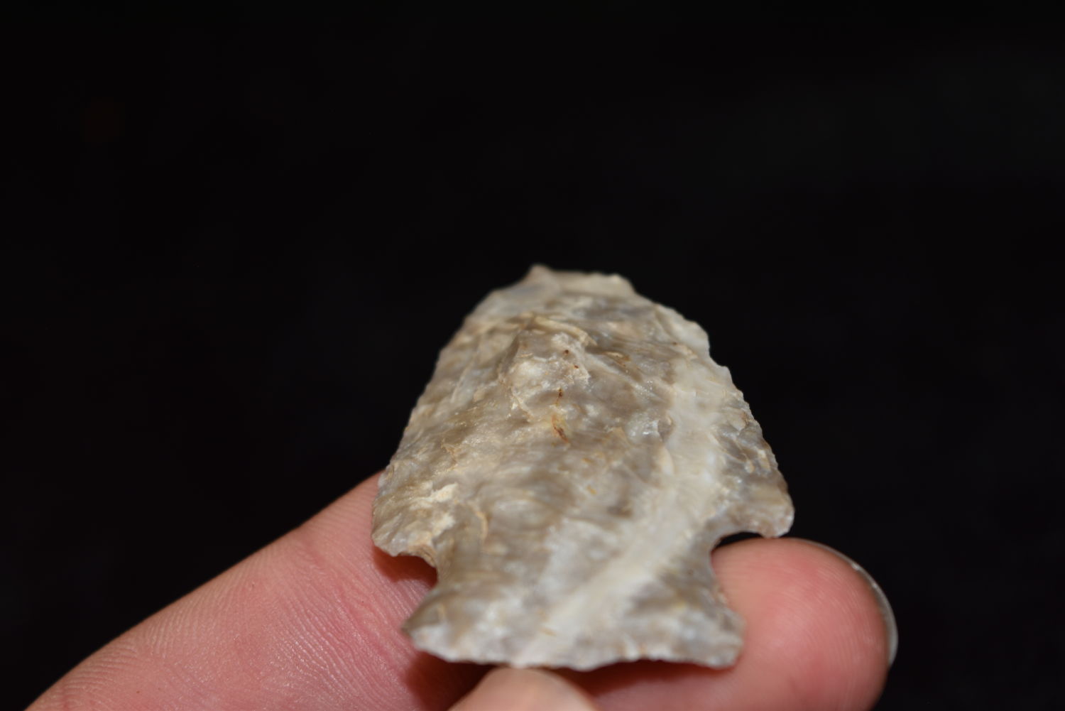 1 3/4″ Rice Lobed Mozarkite Point, Very Colorful, FB Herb Sanders, Douglas Co, Missouri, Native American Arrowhead, Artifact