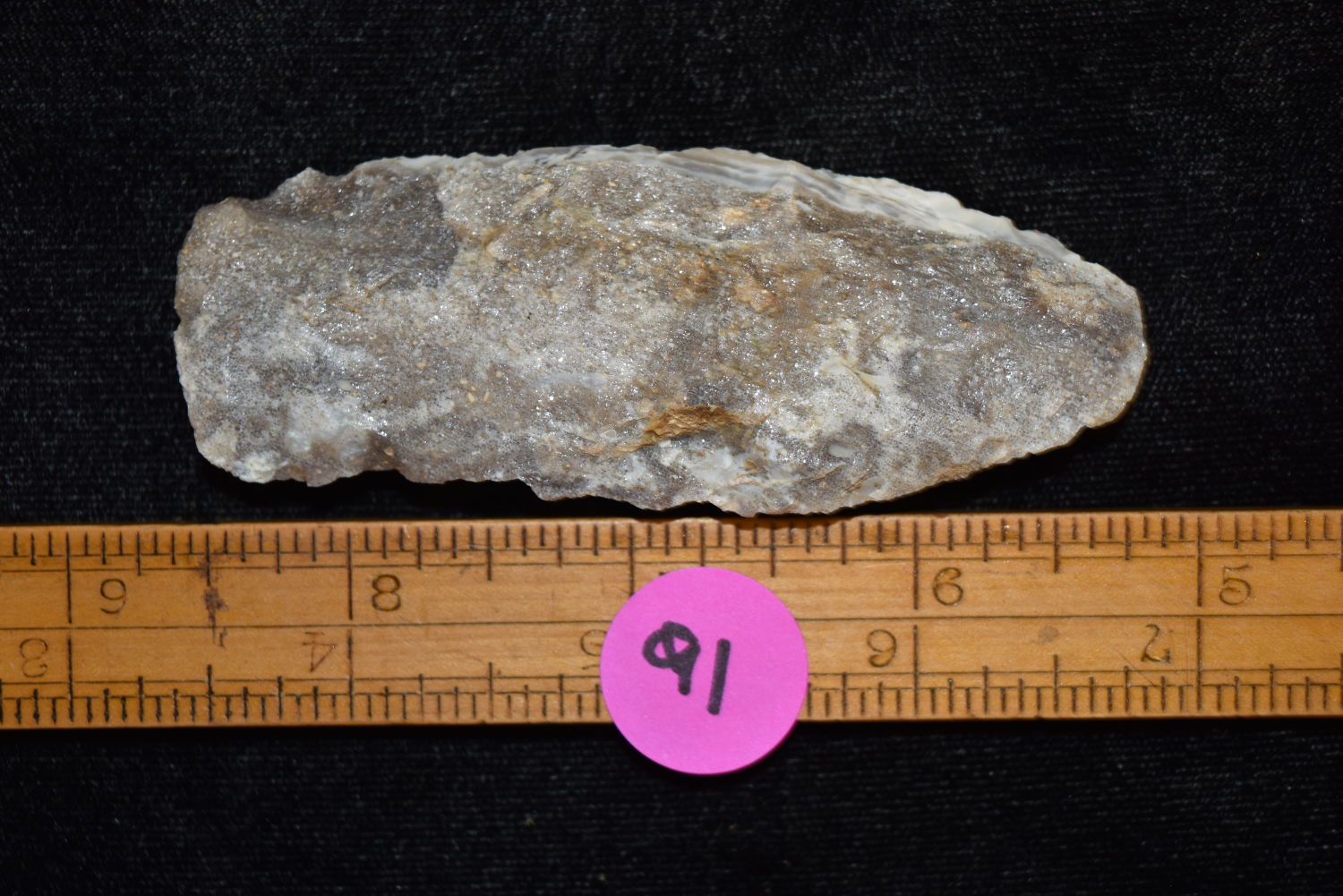 3 3/8″ Quartzite Colorful Blade, FB Herb Sanders, Douglas Co, Missouri, Native American Arrowhead, Artifact