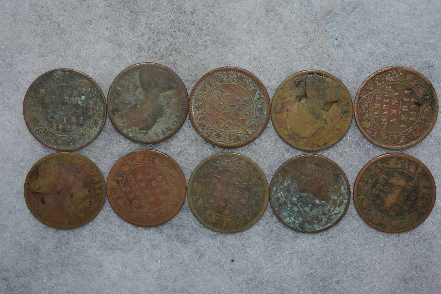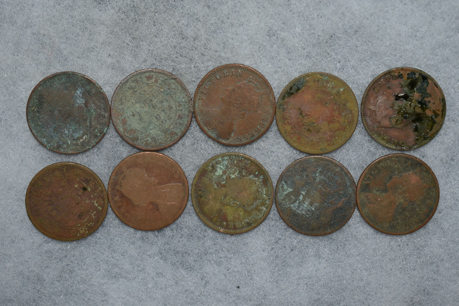 Lot of 10 India Late 1800s Ancient Coins