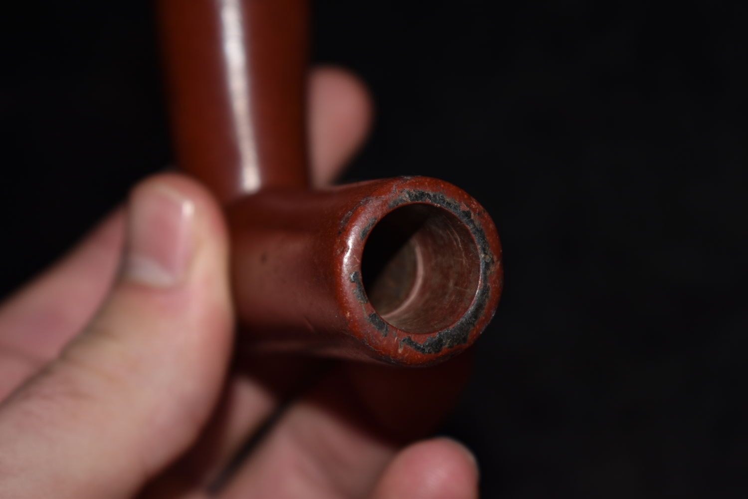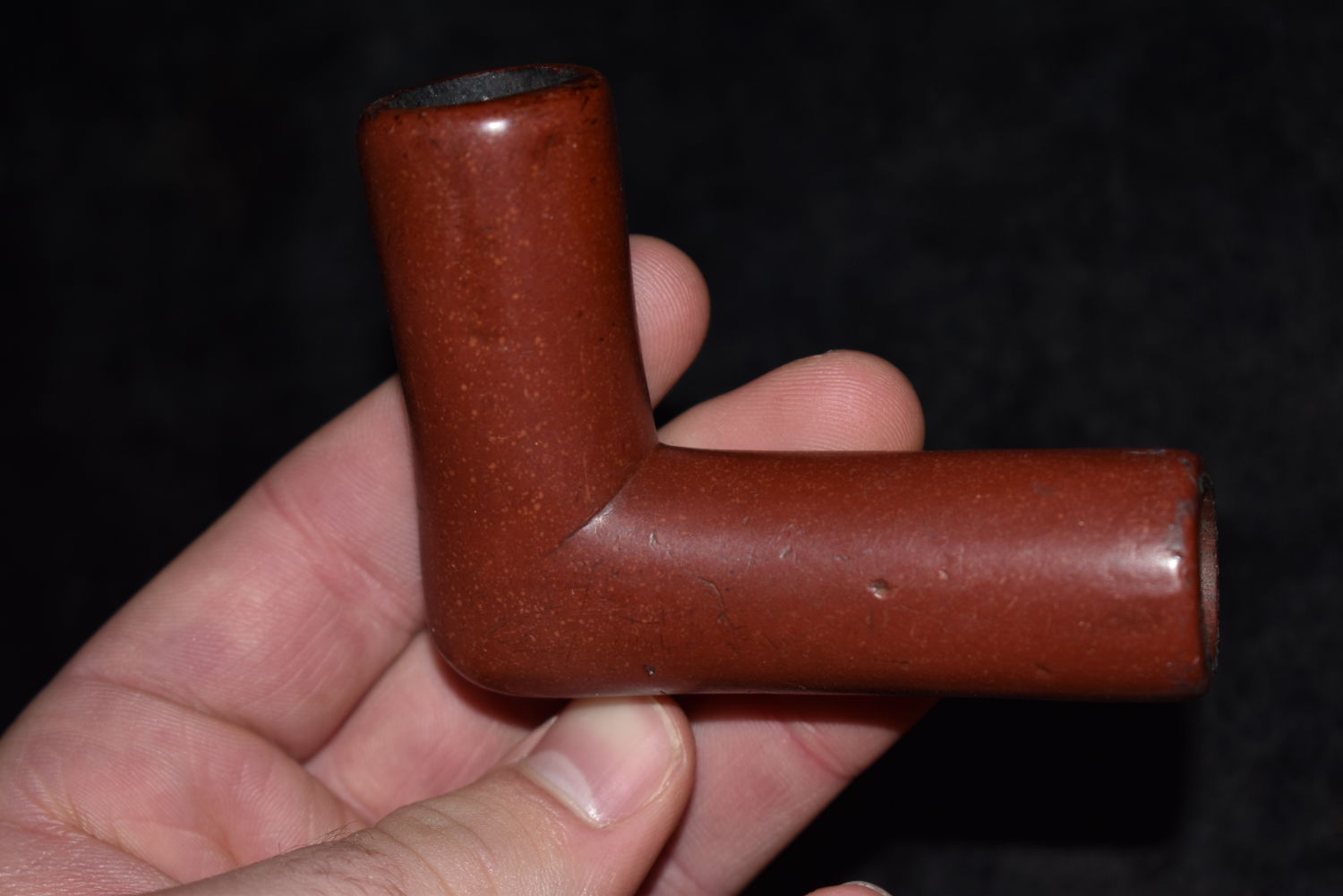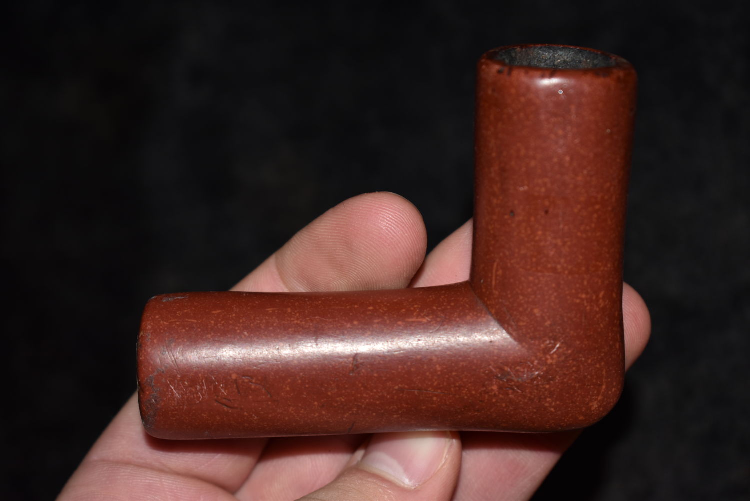3 1/4″ Historic Catlinite Elbow Pipe, Nice Early Example