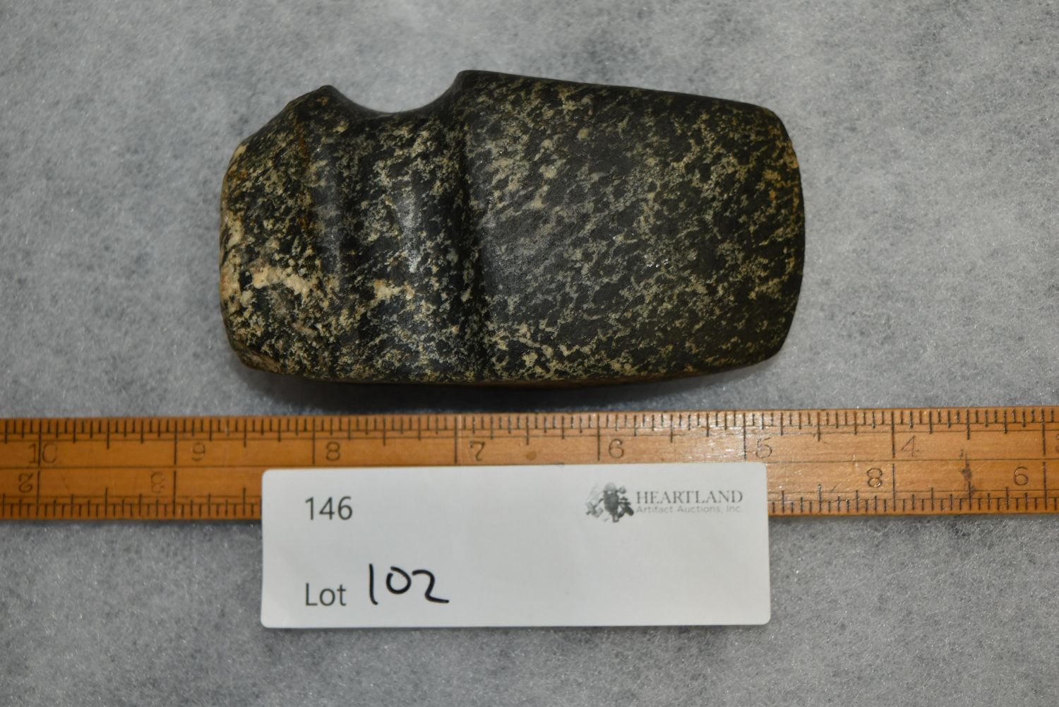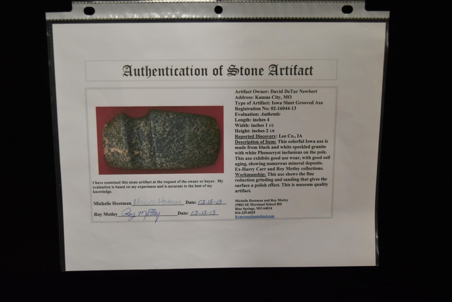 4" 3/4 Iowa Slant Groove Axe, Motley COA, Lee Co, Iowa, Ex Harry Carr, Roy Motley, Jim Millard, Native American Arrowhead, Indian Artifact