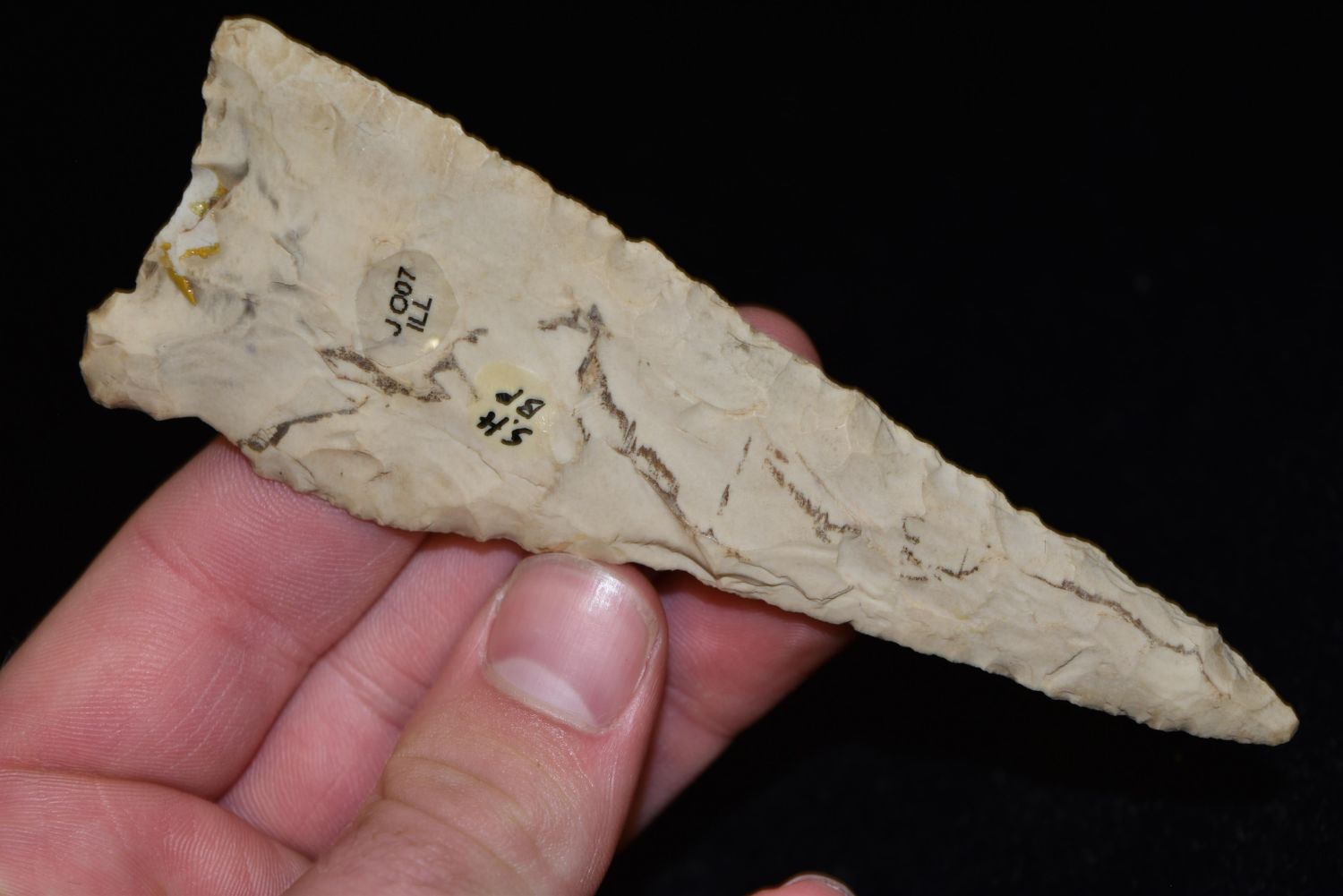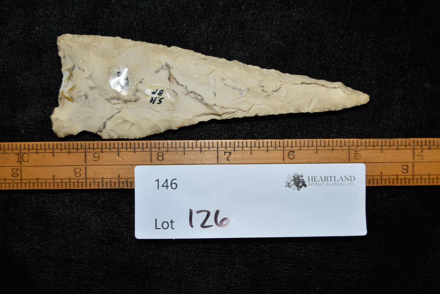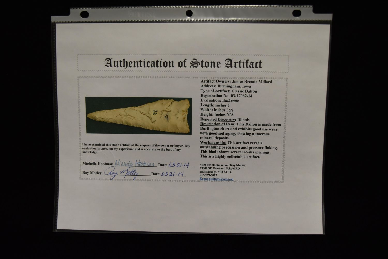 5" Large Classic Dalton Point, Motley COA, Illinois, Made of Burlington Chert, Native American Arrowhead, Indian Artifact