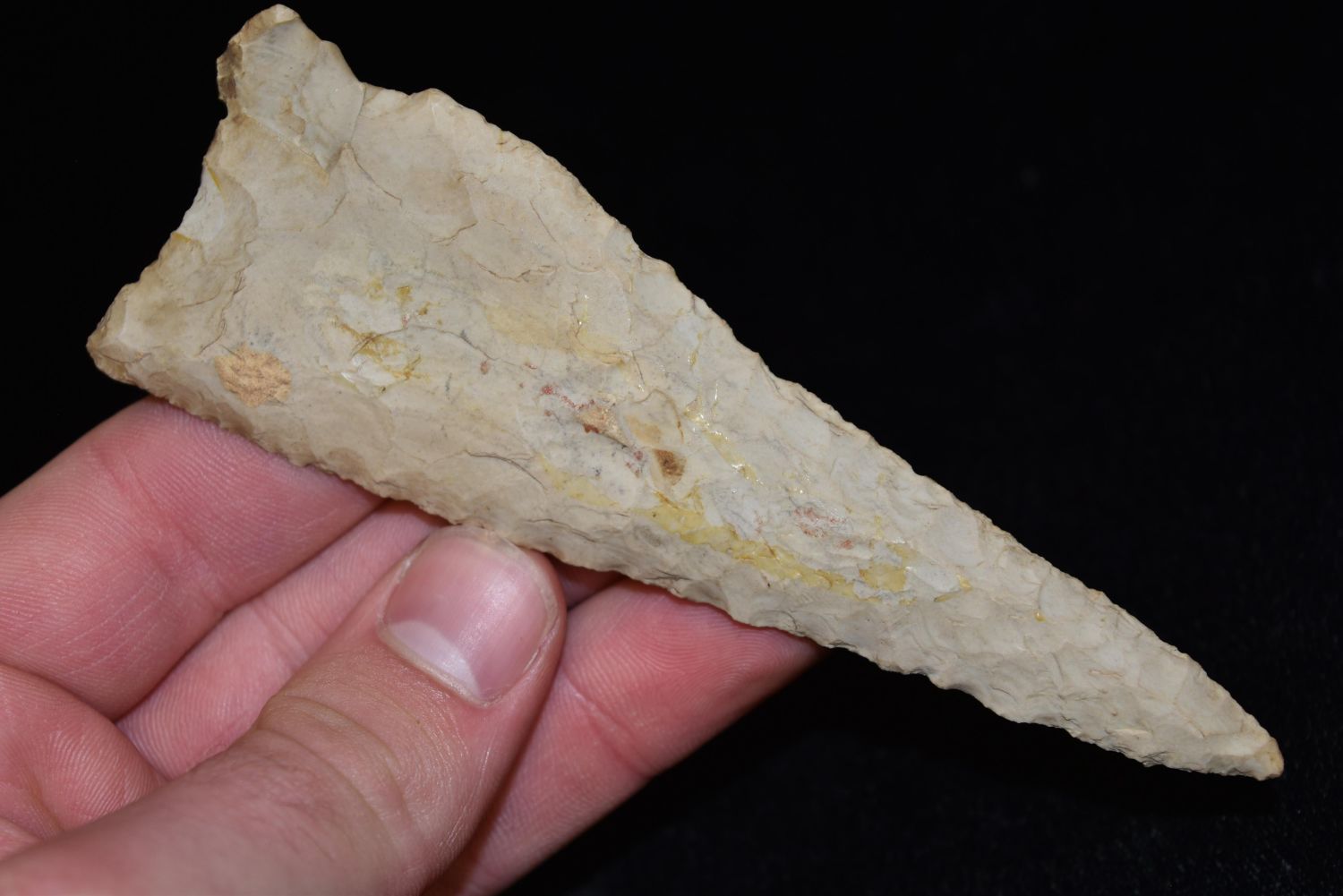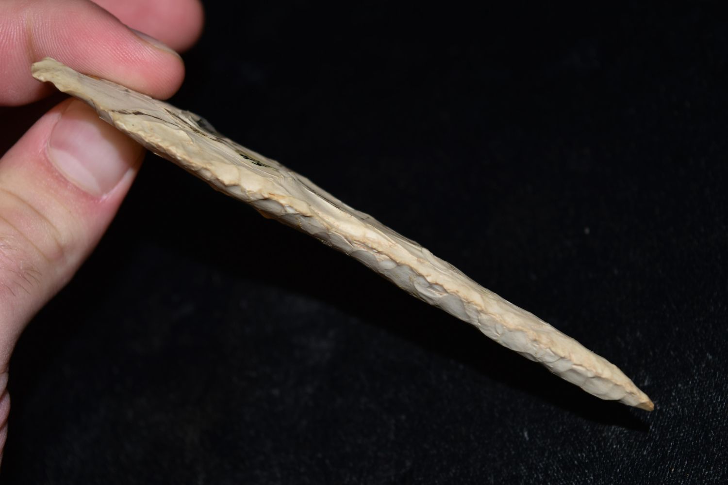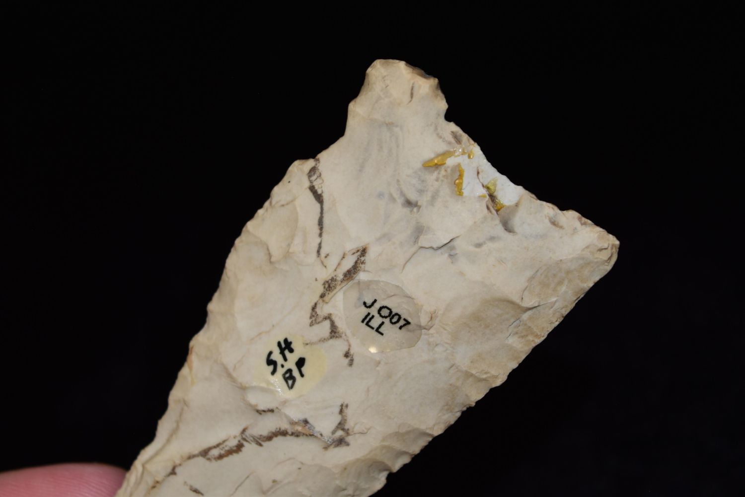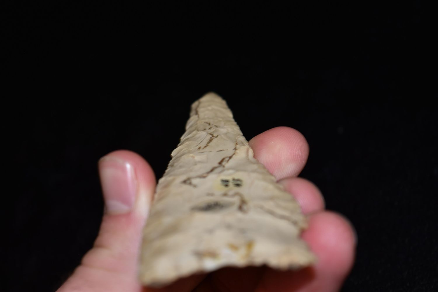 5" Large Classic Dalton Point, Motley COA, Illinois, Made of Burlington Chert, Native American Arrowhead, Indian Artifact