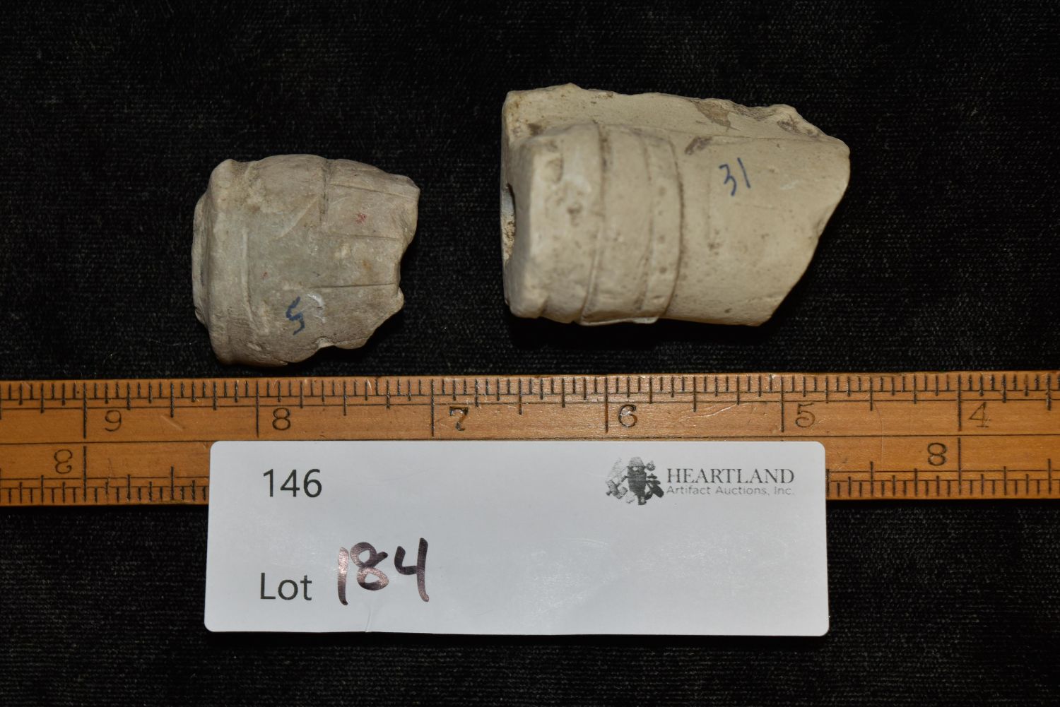 Lot of 2 Limestone Pipe Pieces, Found on Iowaville Site, Iowa, Native American Arrowhead, Indian Artifact