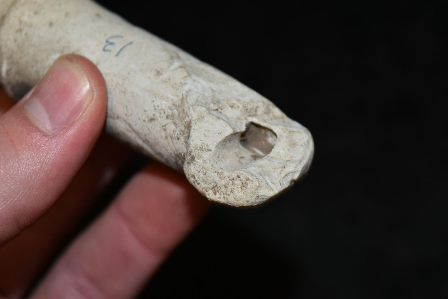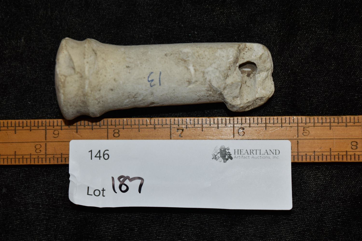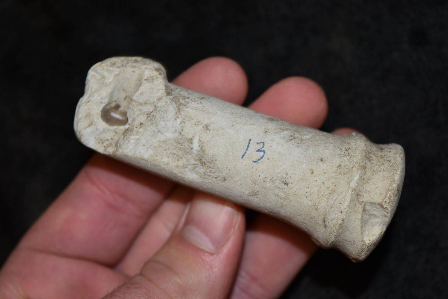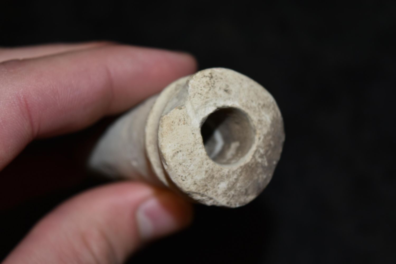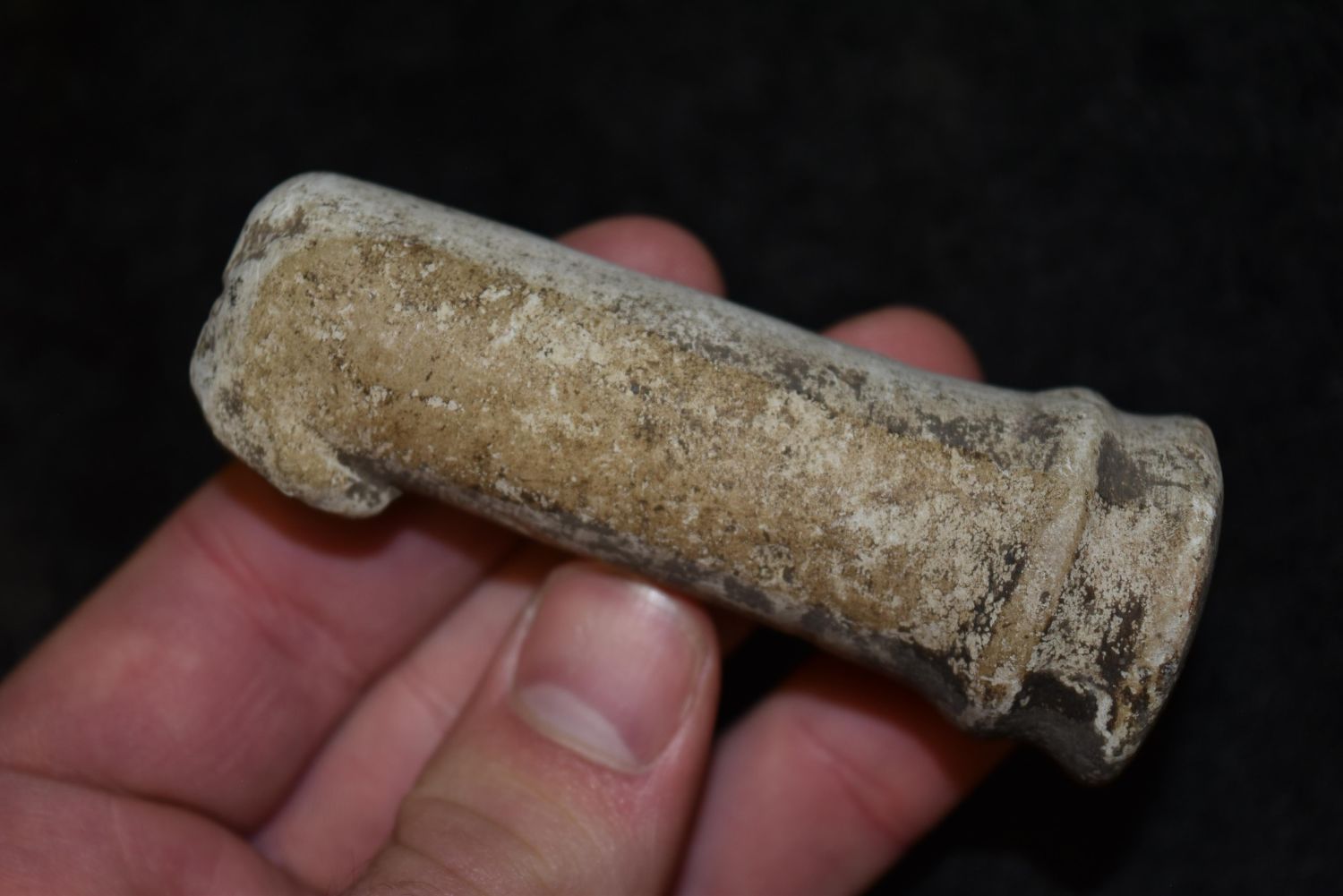 3 3/8" Limestone Pipe Stem, Found on Iowaville Site, Iowa, Native American Arrowhead, Indian Artifact