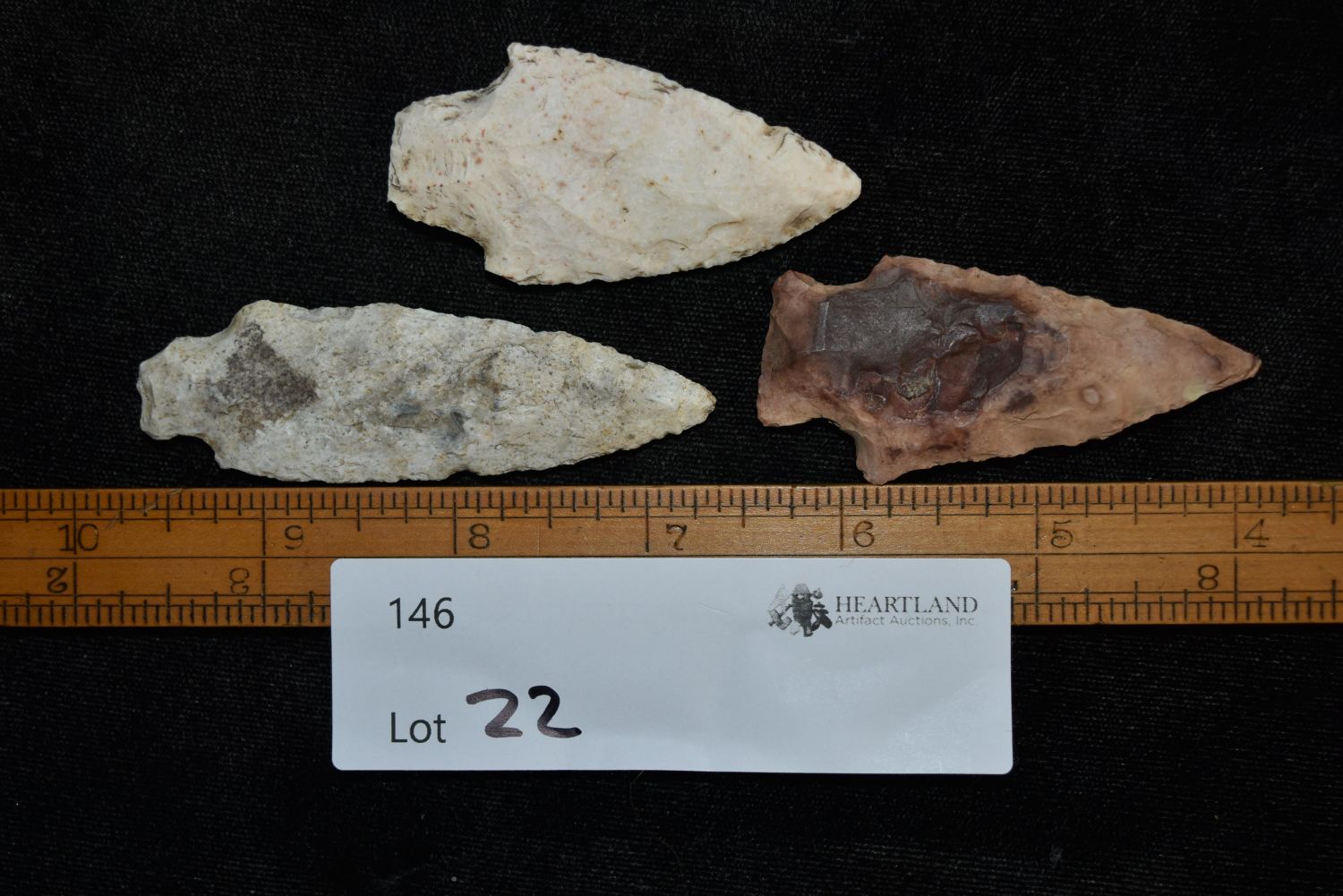 Lot of 3 Woodland Points, Iowa, Native American Arrowhead, Indian Artifact Condition: 100% Guaranteed Authentic via our Return Policy & Found on Private Property