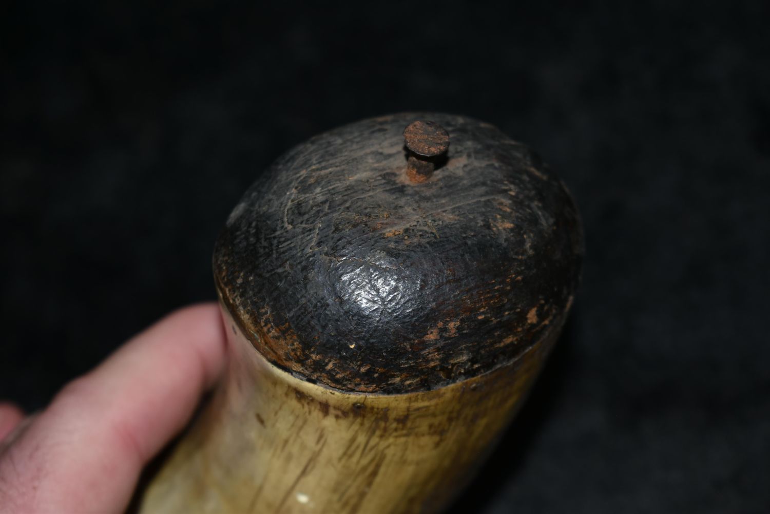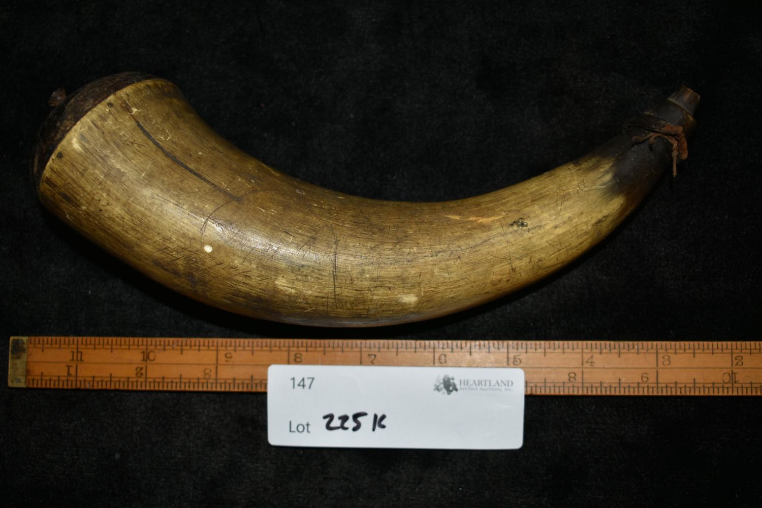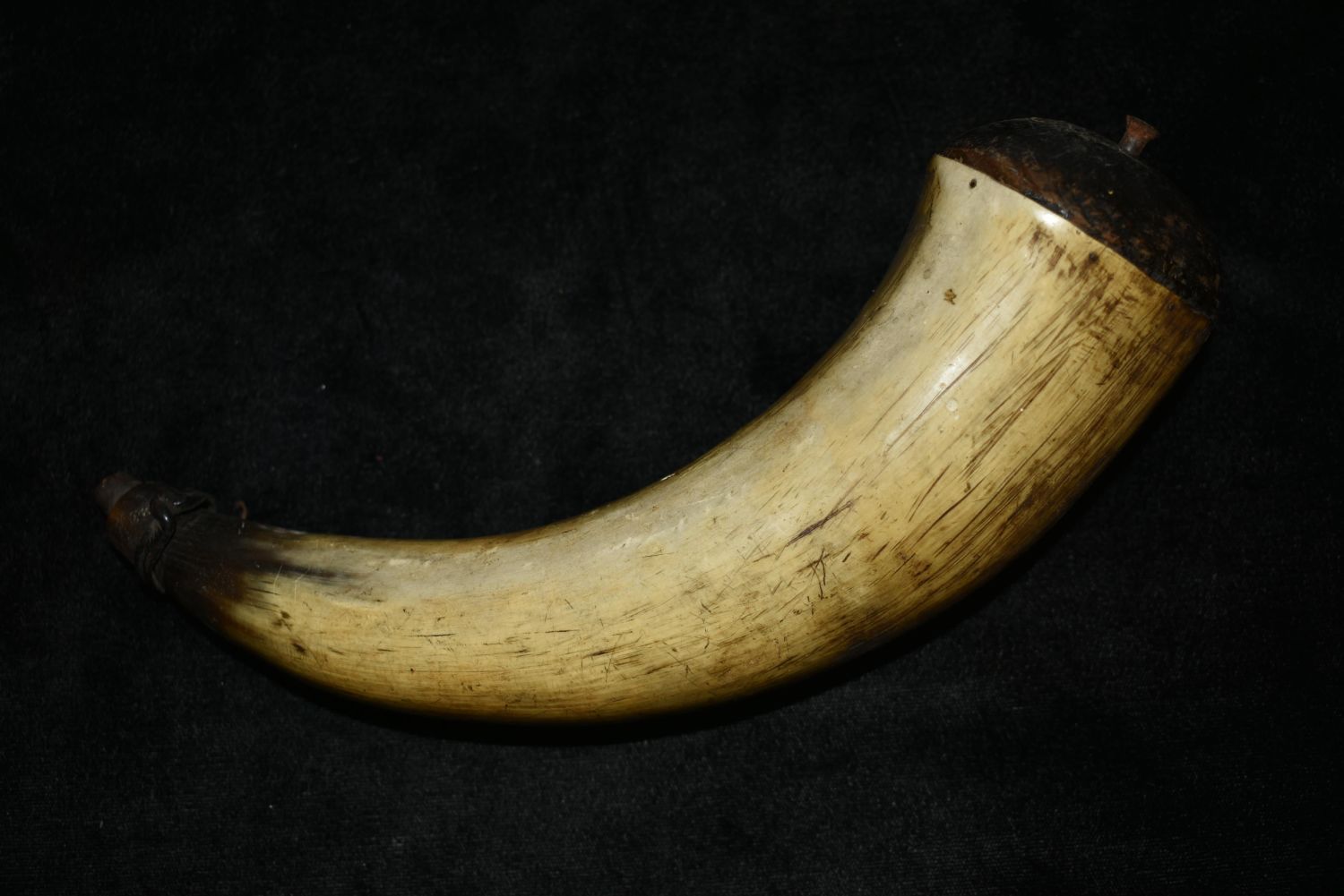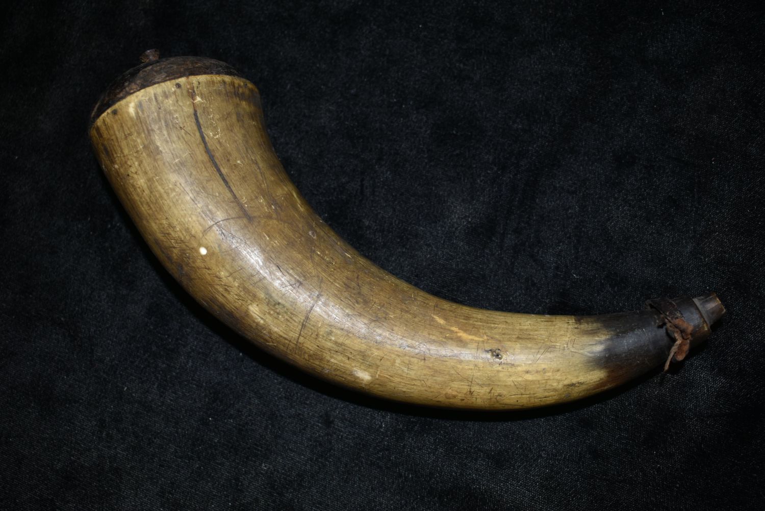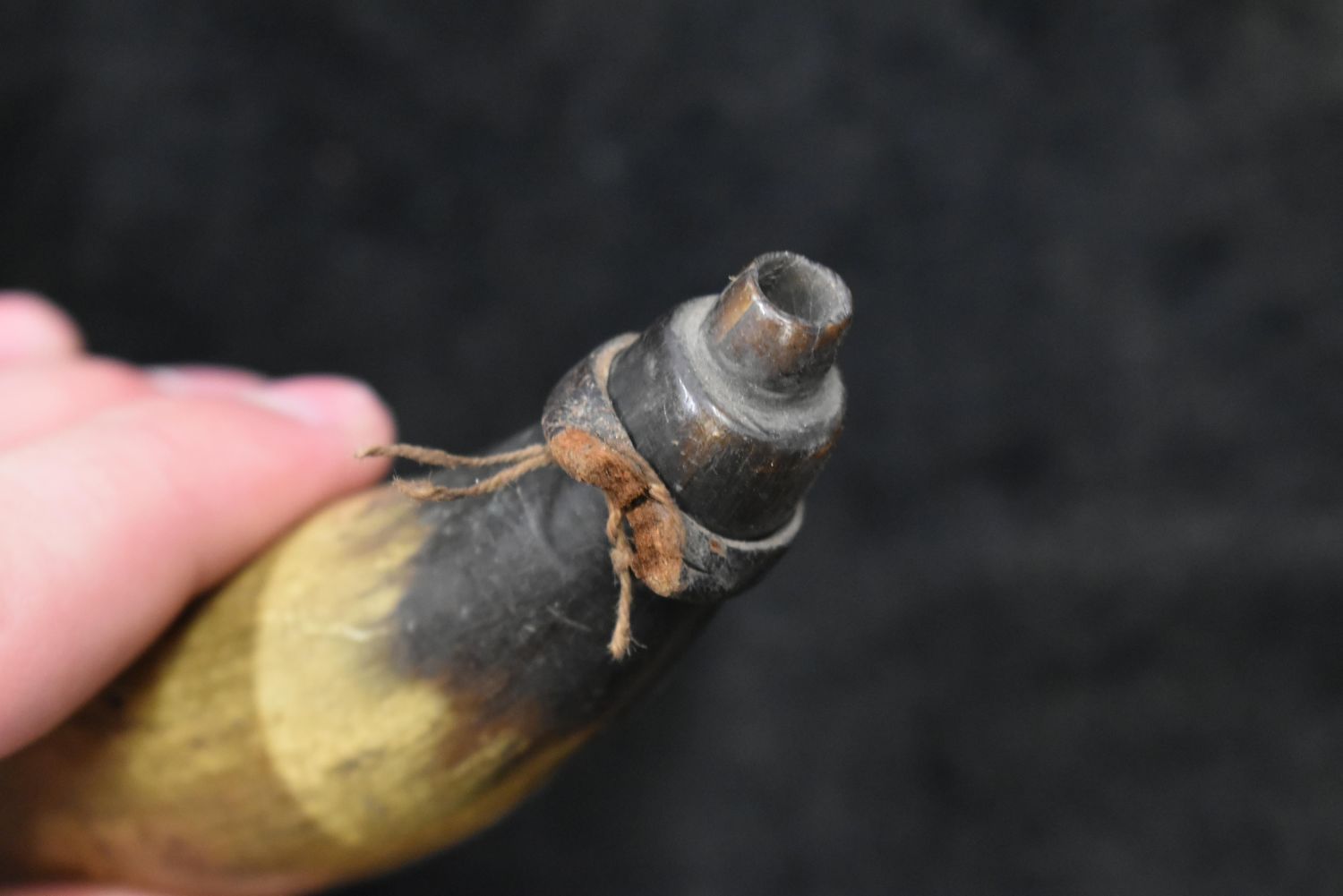 8 1/2" Antique Powder Horn Condition: 100% Guaranteed Authentic via our Return Policy & Found on Private Property