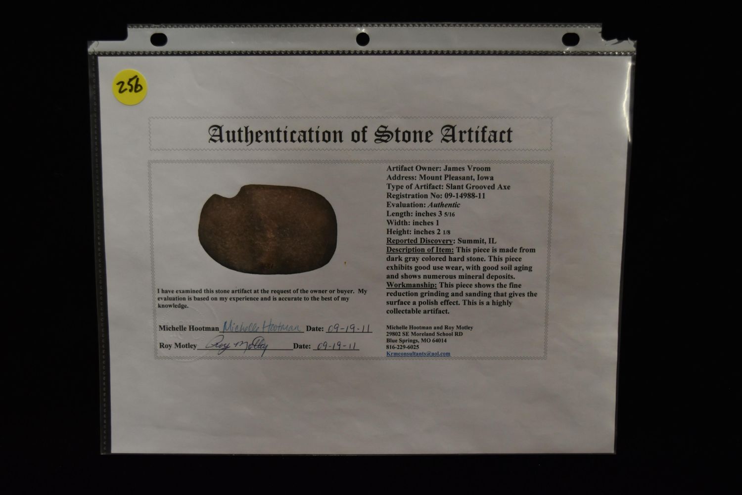 3 5/16" 3/4 Slant Groove Axe, Summit, Illinois, Good Shape, Native American Arrowhead, Indian Artifact