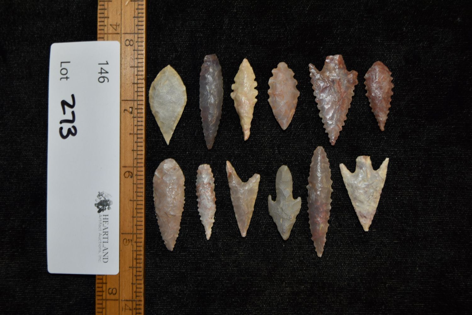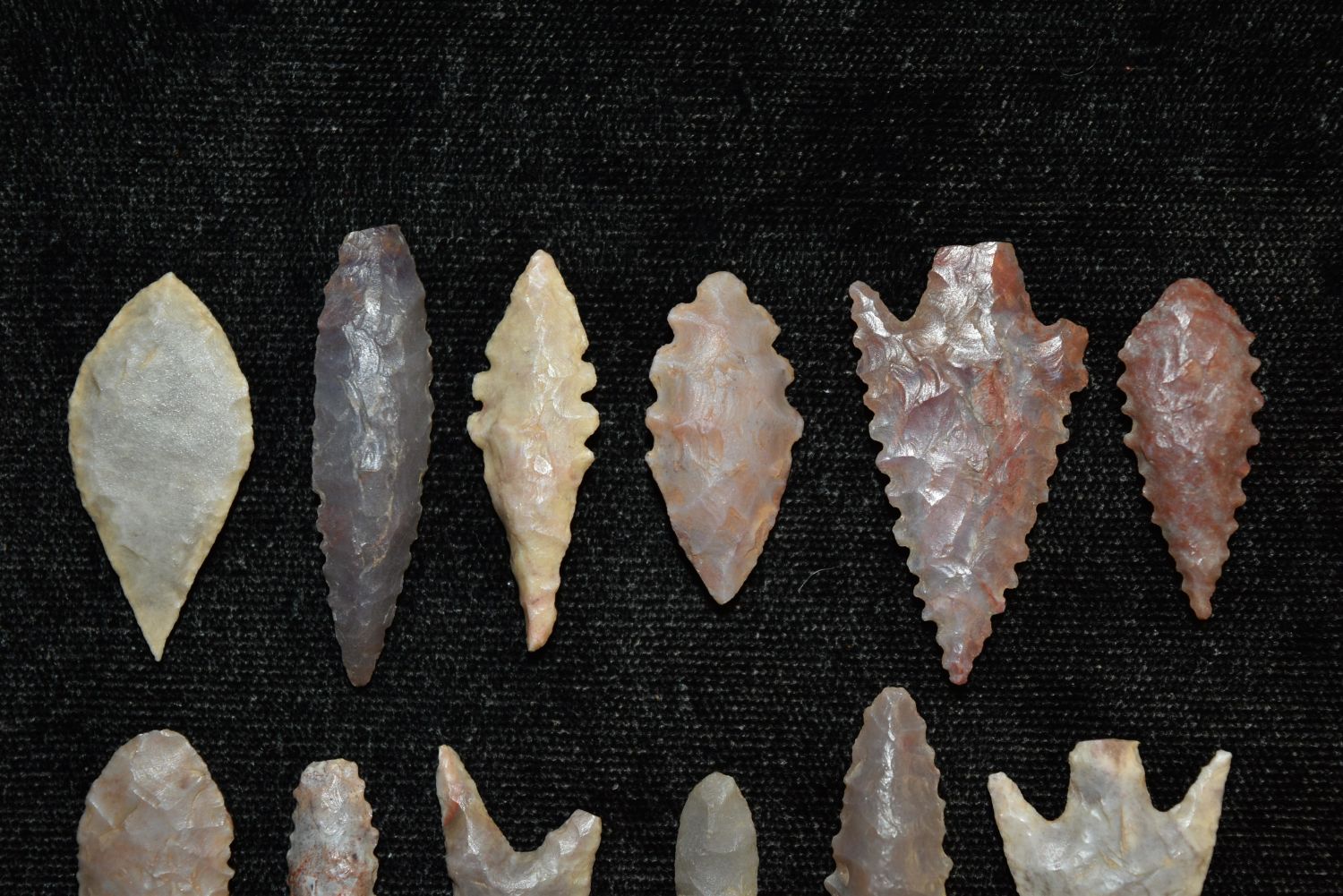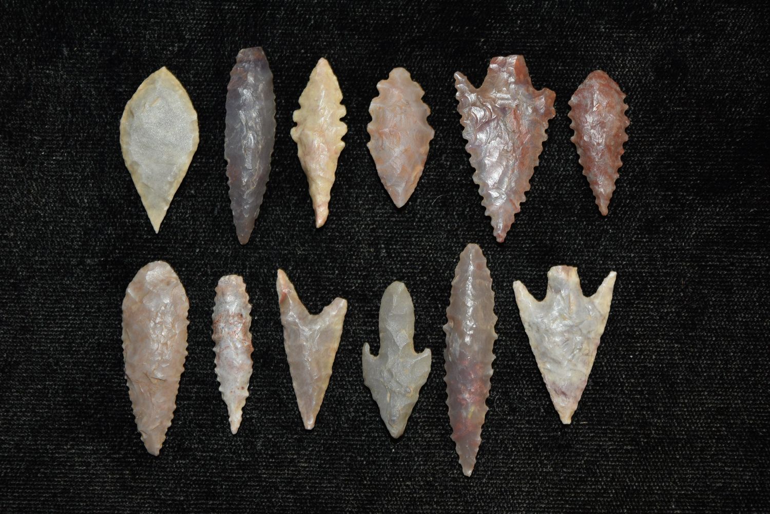Lot of 12 Neolithic Points, Largest 1 5/8" , Native American Arrowhead, Indian Artifact