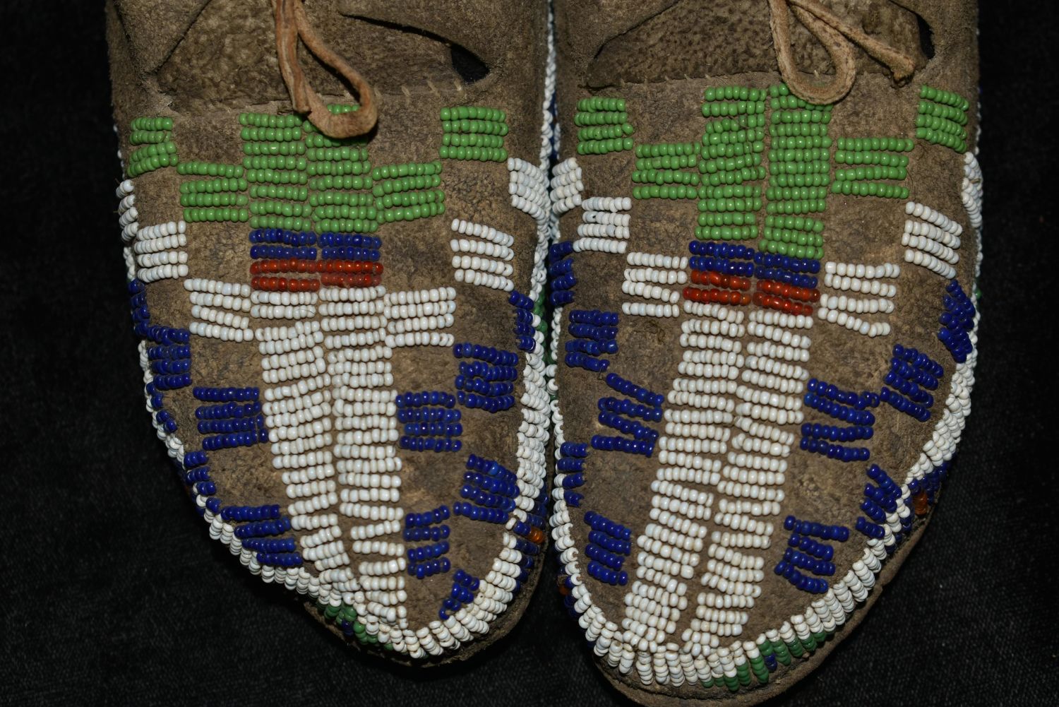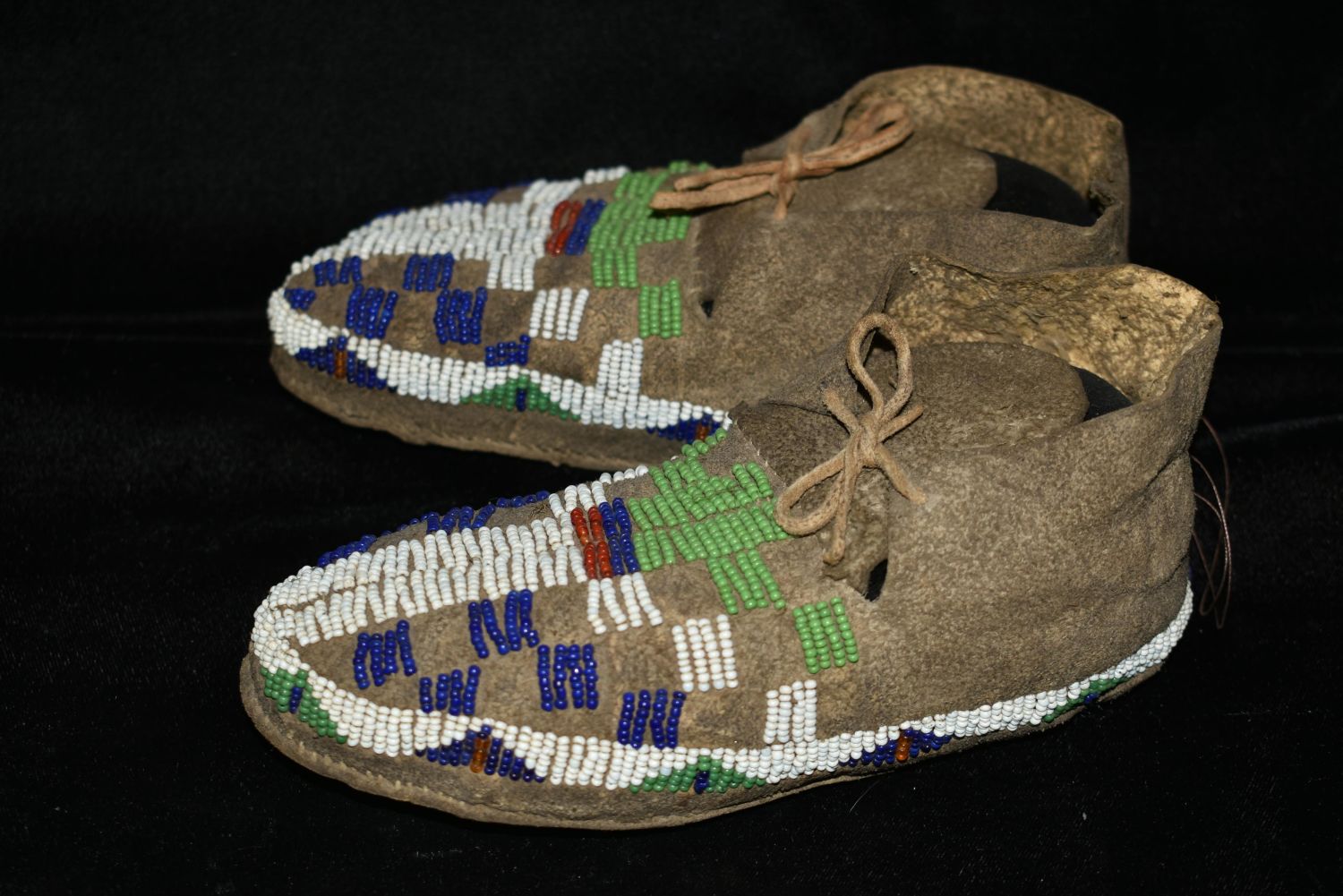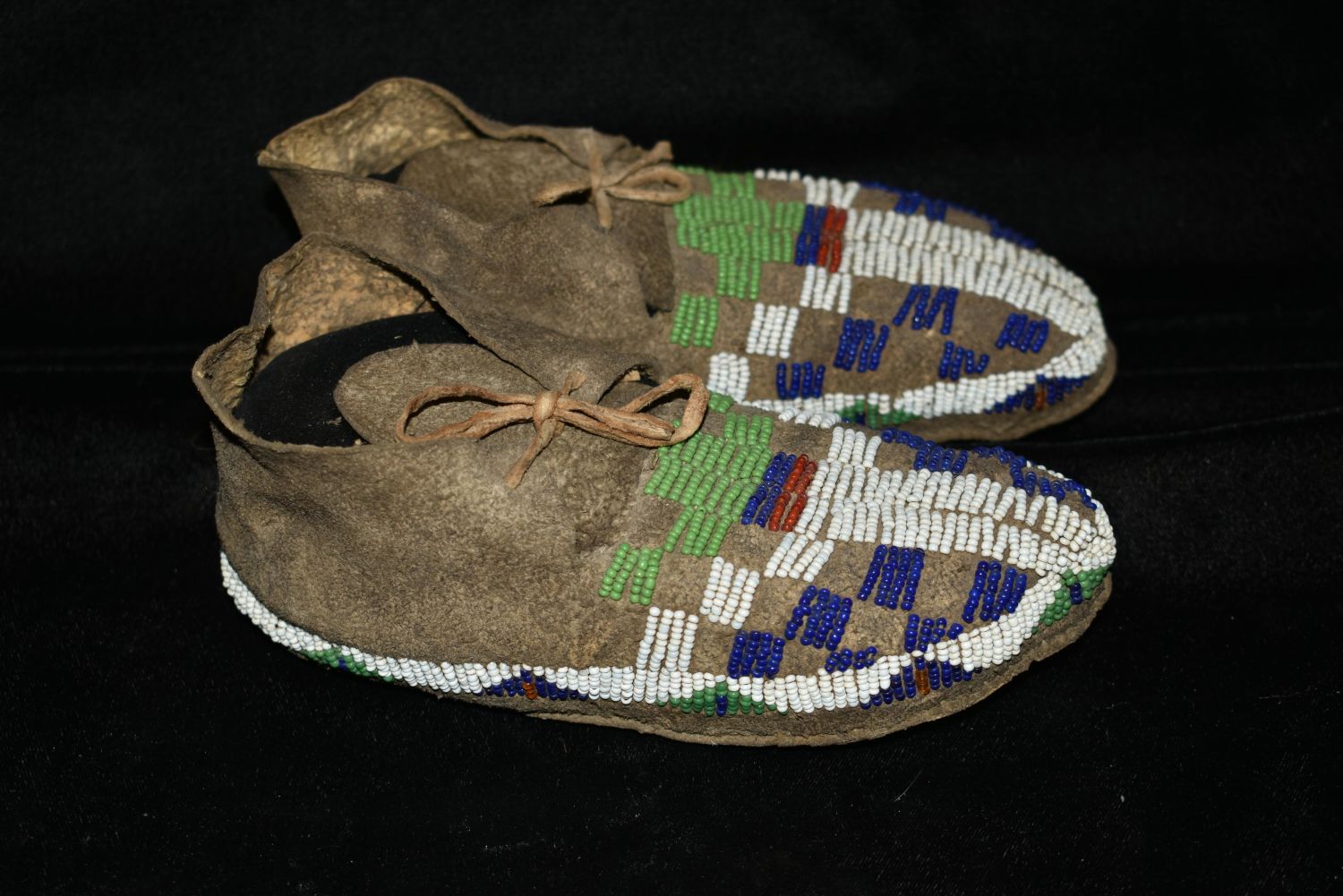 7" Historic Beaded Moccasins, 1890s-1920s, Native