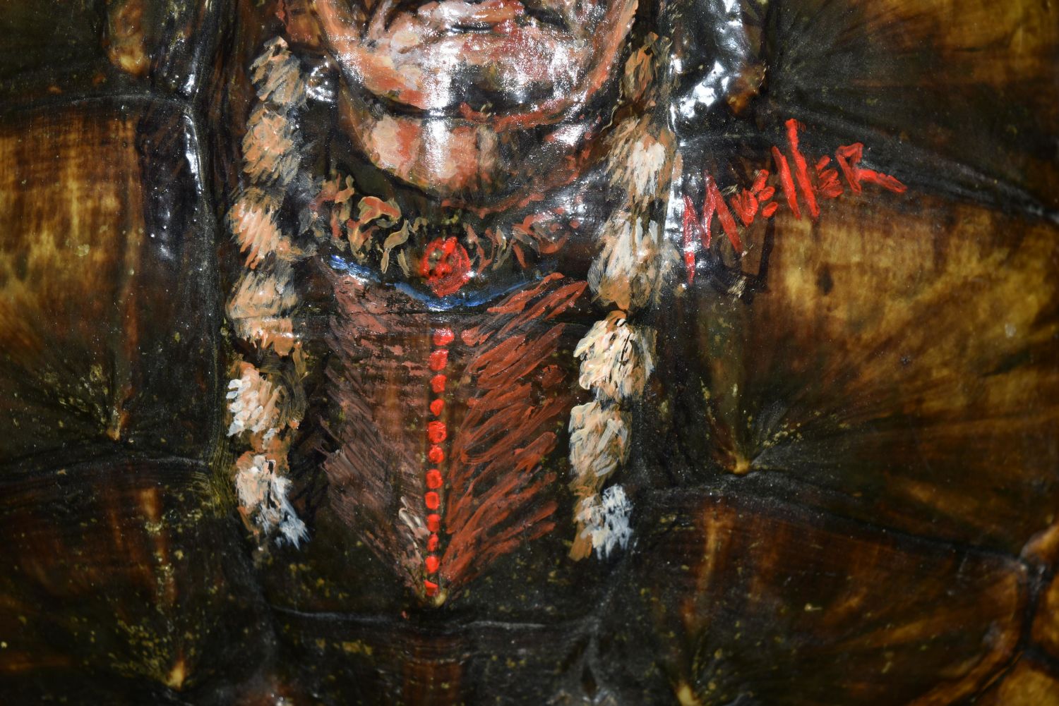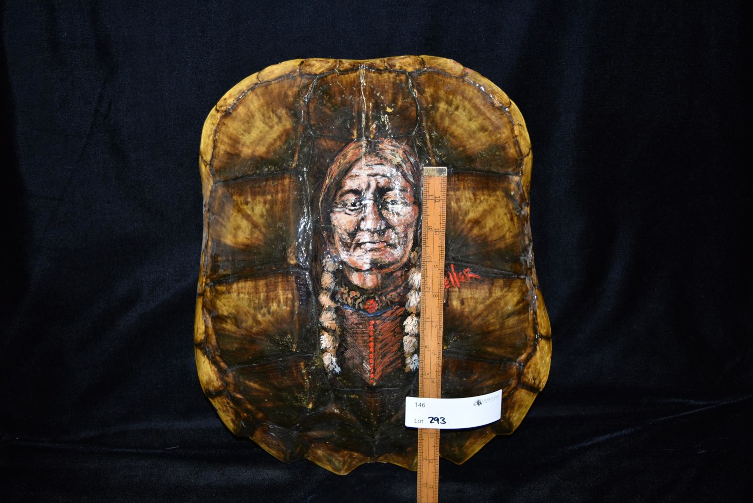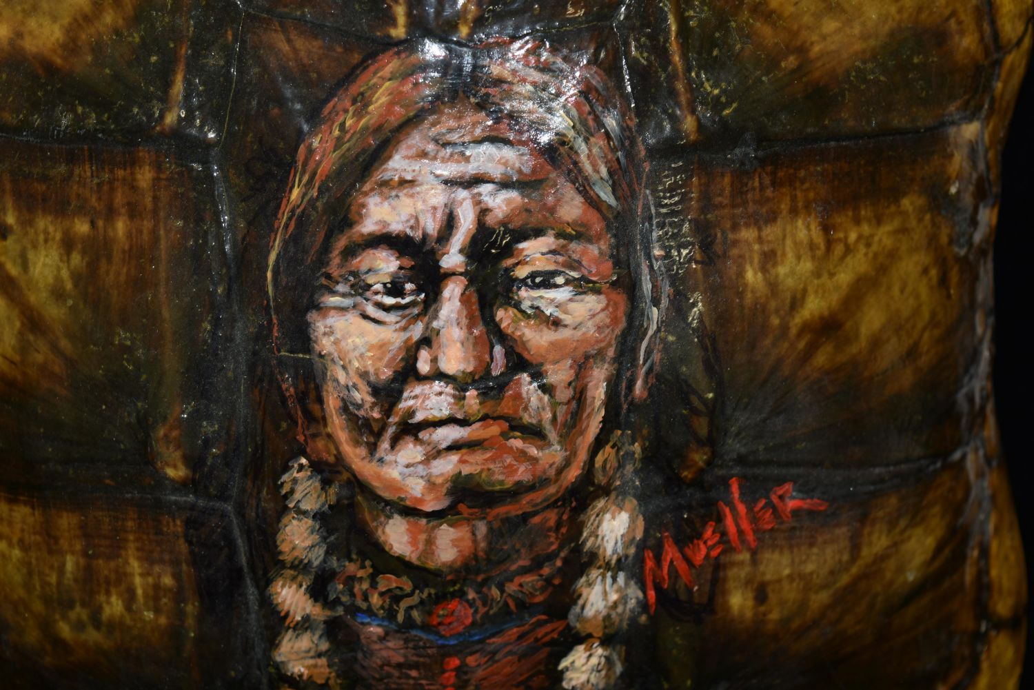 16" Snapping Turtle Shell with Sitting Bull Painting, Native American Arrowhead, Indian Artifact