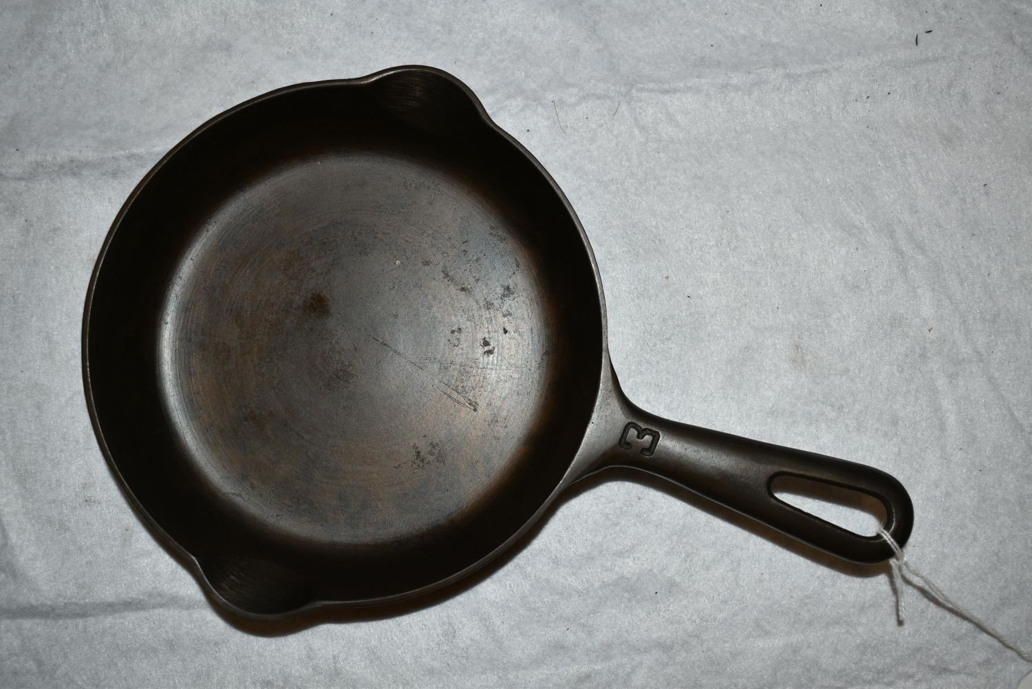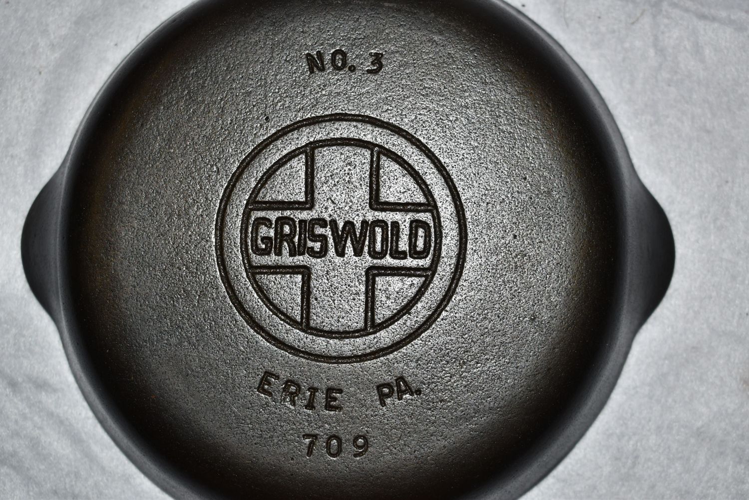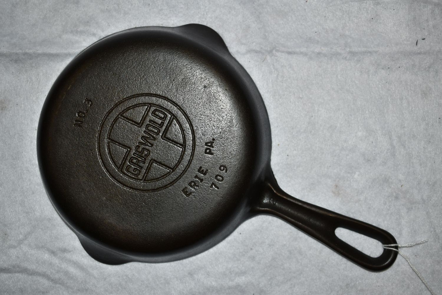 #3 Griswold Medium Logo, Grooved Handled Cast Iron Skillet, Vintage Cast Iron Skillet Cookware