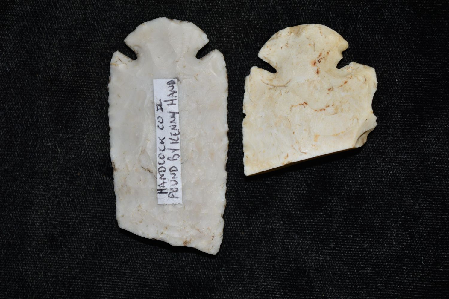 Lot of 2 Heartbreaker Dovetail Points, Hancock Co, Illinois, FB Kenny Hand, Native American Arrowhead, Indian Artifact