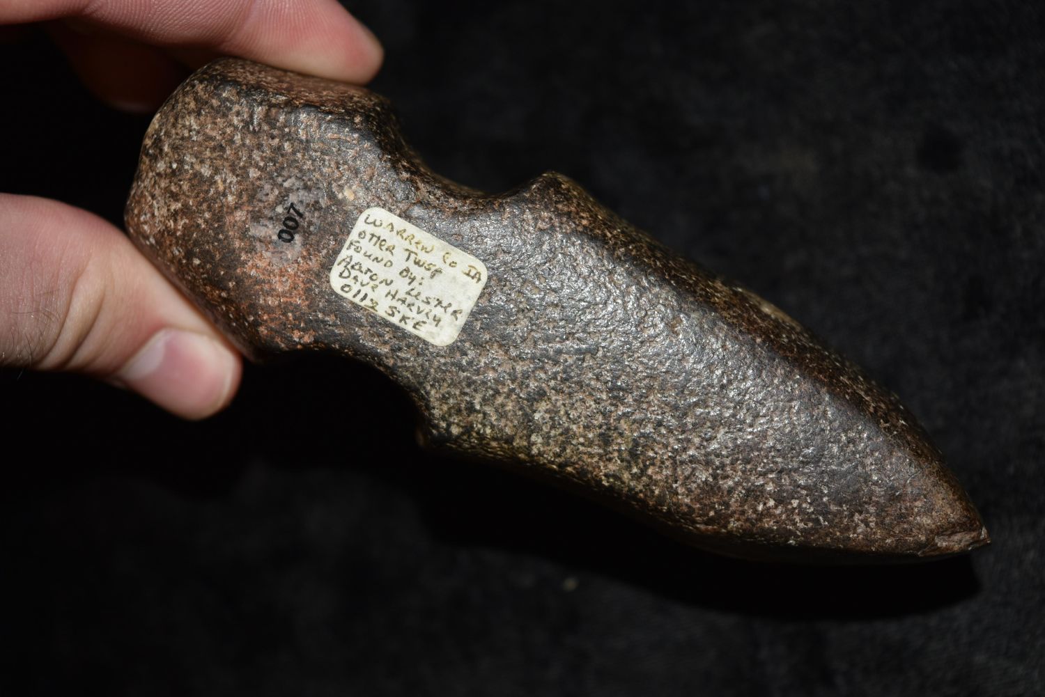 5 1/2" 3/4 Groove Axe, Found in Otter Township, Warren Co, Iowa by Aaron Lester, Ex Davey Harvey, Dennis DeRosear, Jim Millard, Native American Arrowhead, Indian Artifact