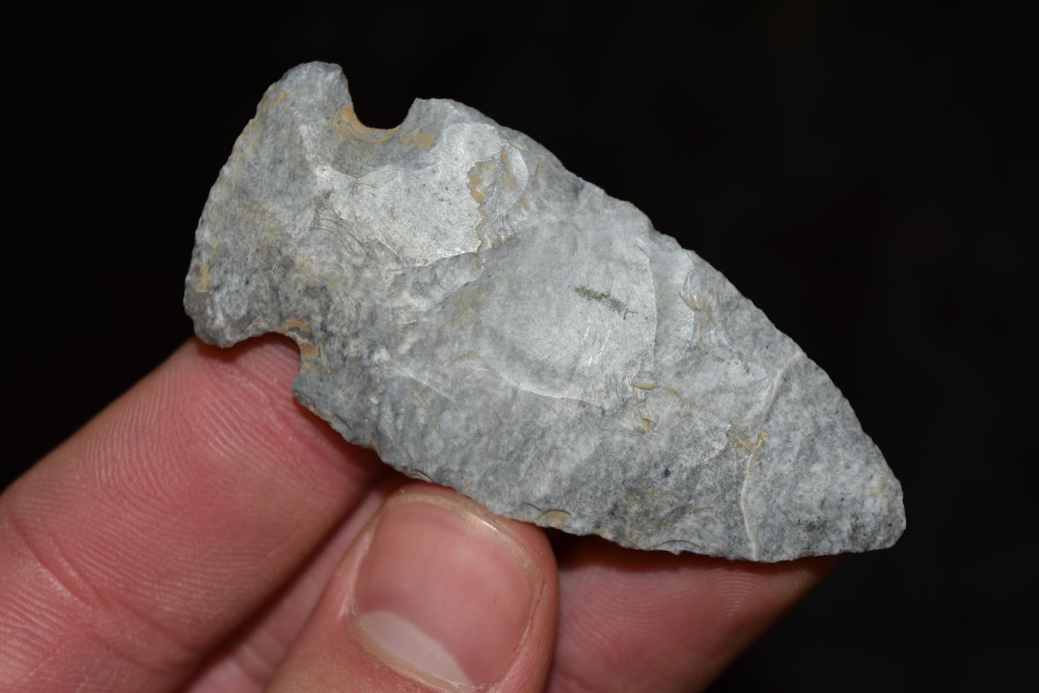 2 1/2" Rice Lobed Point, Iowa, Native American Arrowhead, Indian Artifact Condition: 100% Guaranteed Authentic via our Return Policy & Found on Private Property
