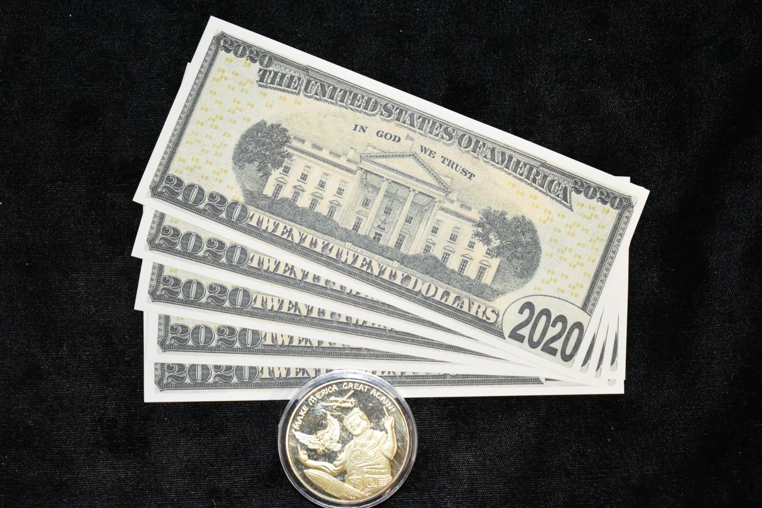 TRUMP COIN AND 5 TRUMP BILLS Condition: Guaranteed Authentic/Unaltered