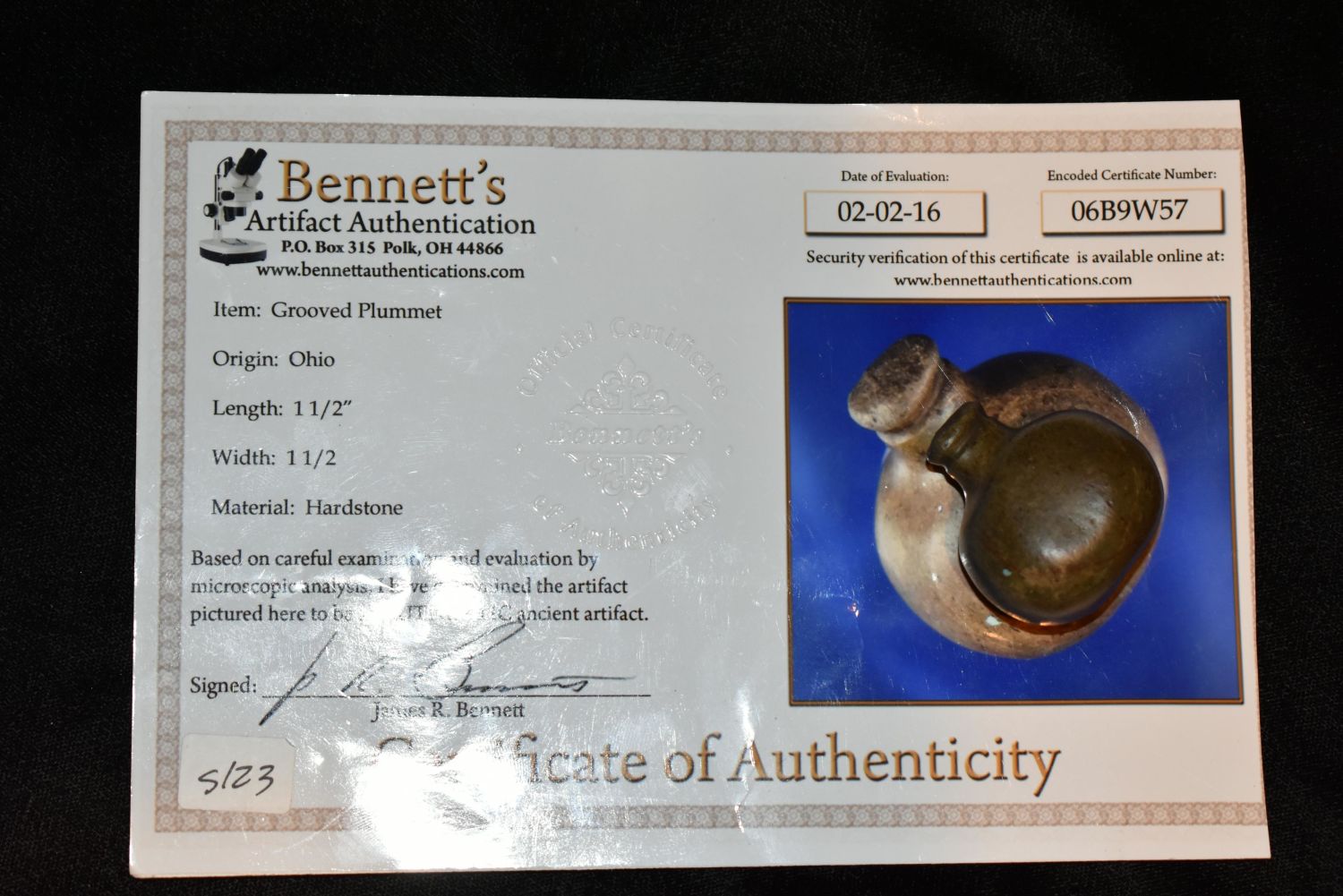 1 1/2" Grooved Hardstone Plummet found in Ohio Bennett C.O.A Condition: 100% Guaranteed Authentic via our Return Policy & Found on Private Property