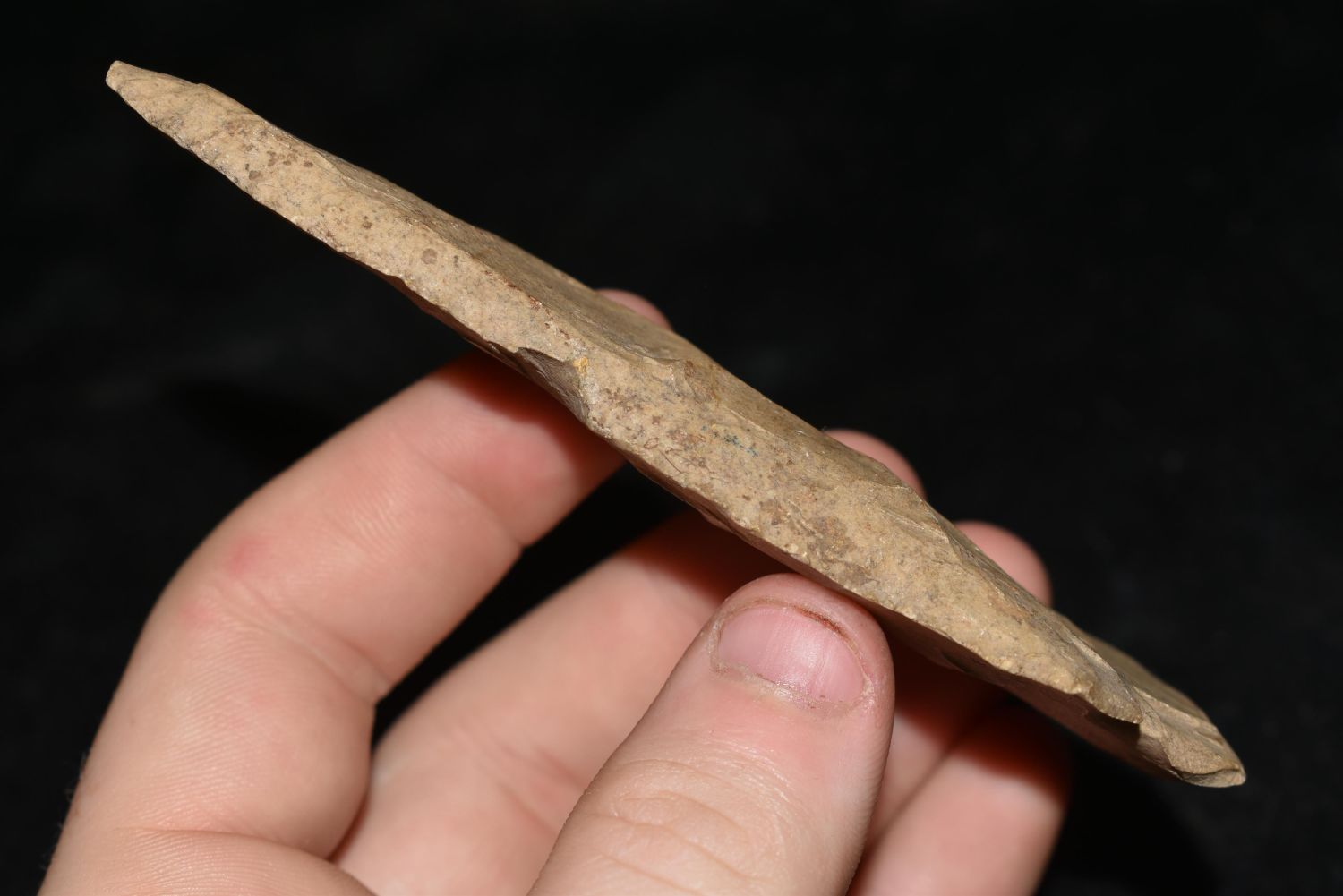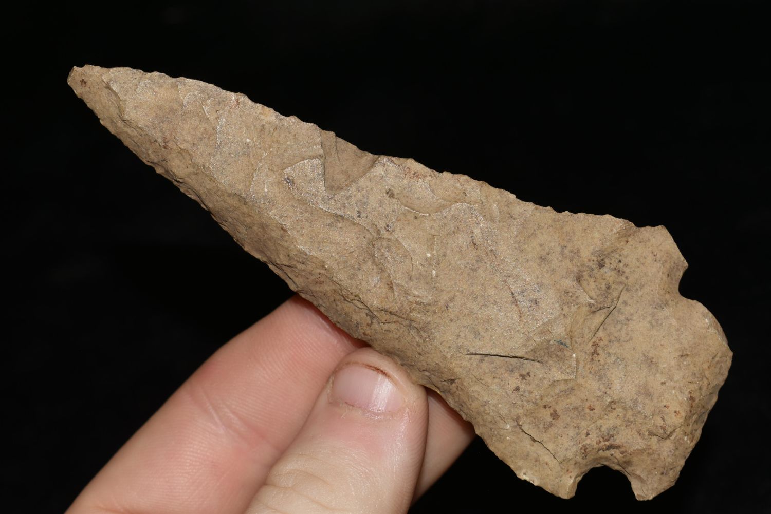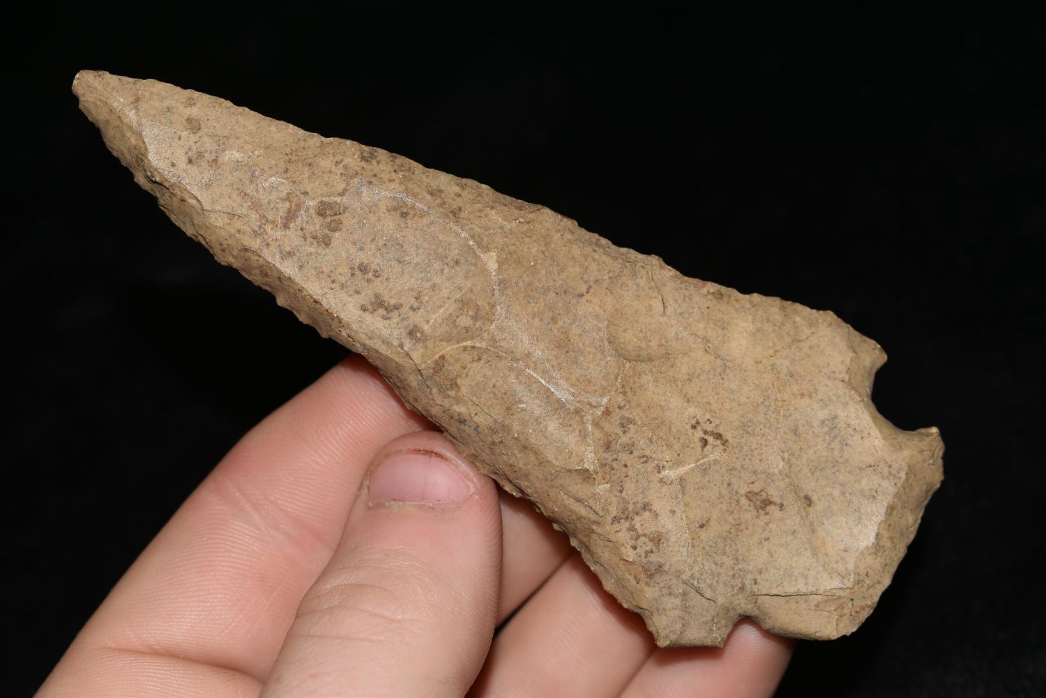 4 1/4" Beveled Archaic Point, found in Iowa Condition: 100% Guaranteed Authentic via our Return Policy & Found on Private Property