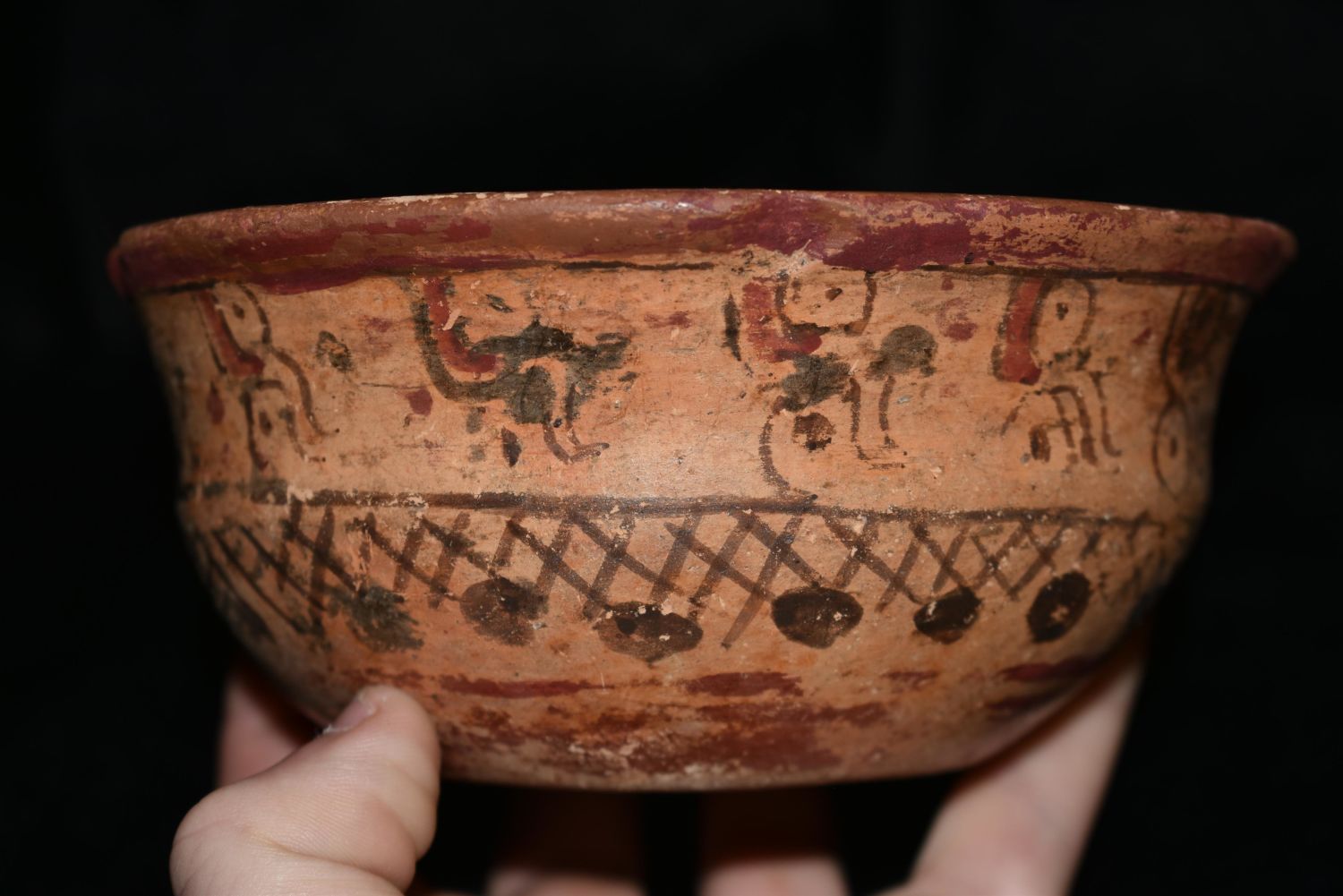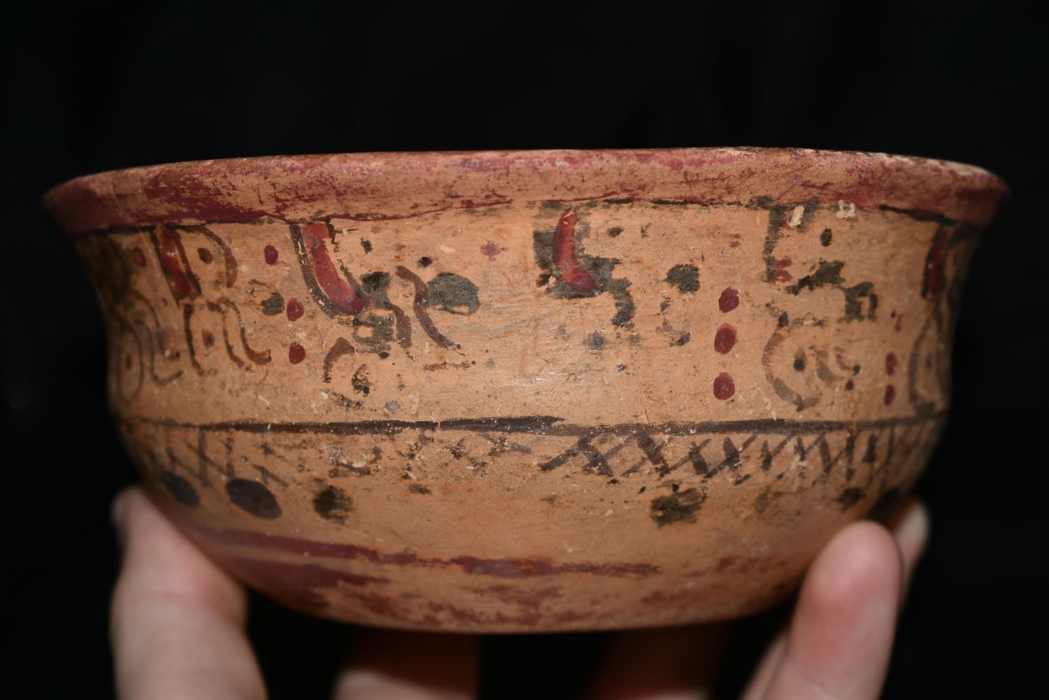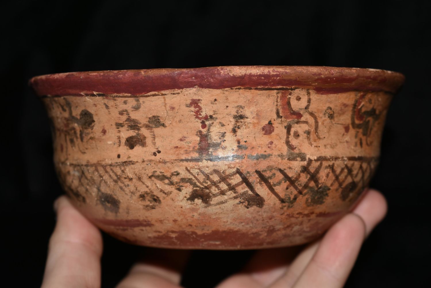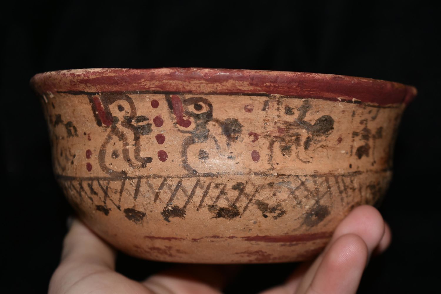 Beautifully 5 1/4" Painted Pre-Columbian Mayan Bowl with Slight Restoration Condition: 100% Guaranteed Authentic via our Return Policy & Found on Private Property