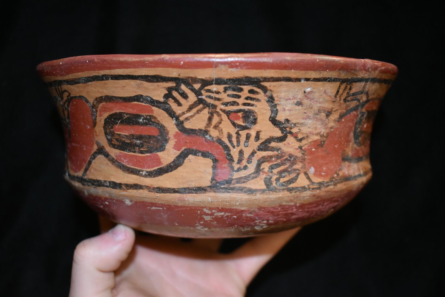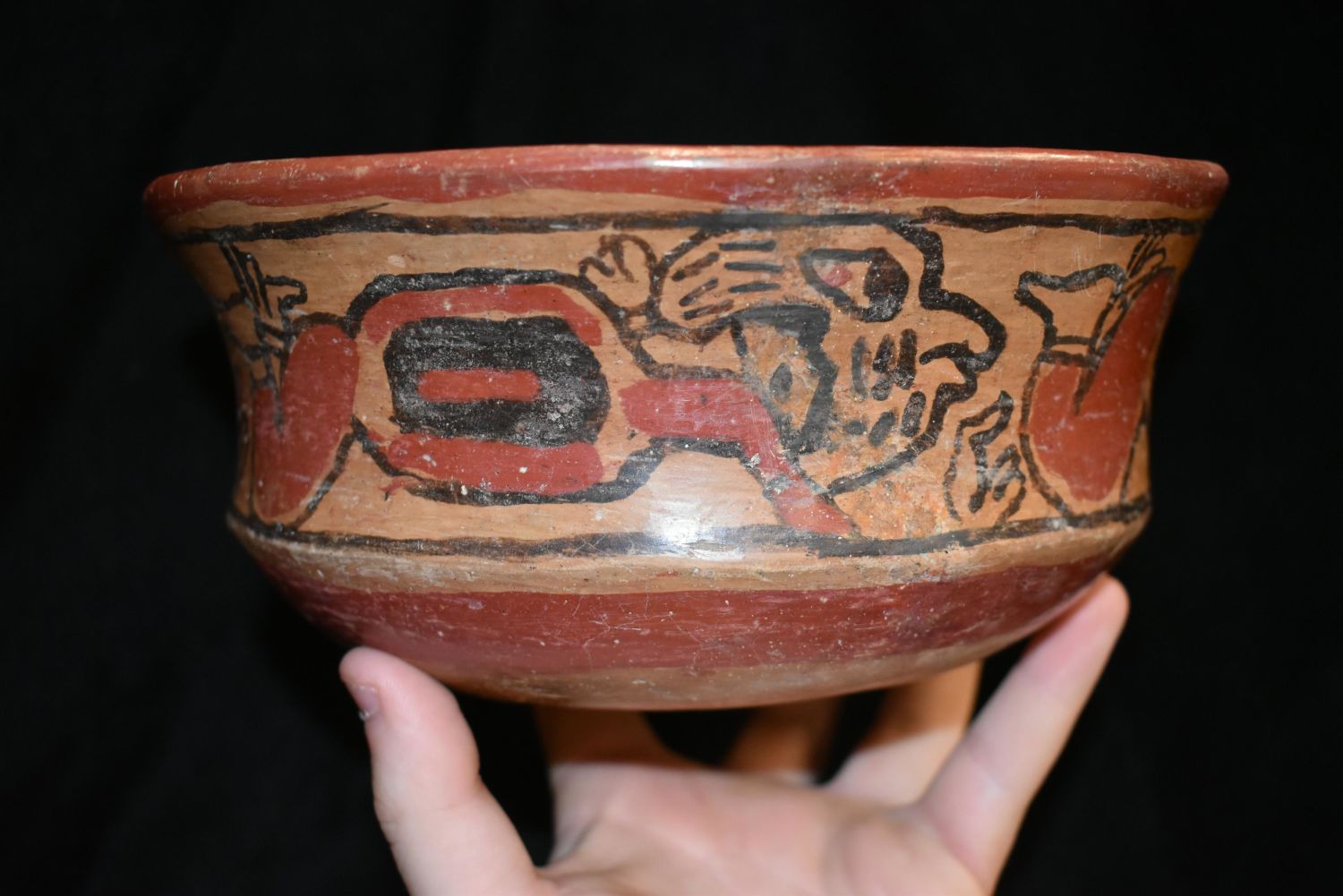 Beautifully 8" Painted Mayan Pre Columbian Bowl Condition: 100% Guaranteed Authentic via our Return Policy & Found on Private Property