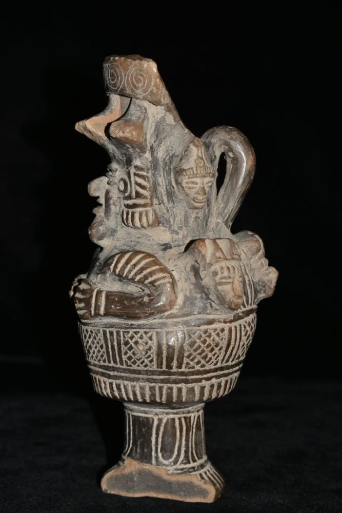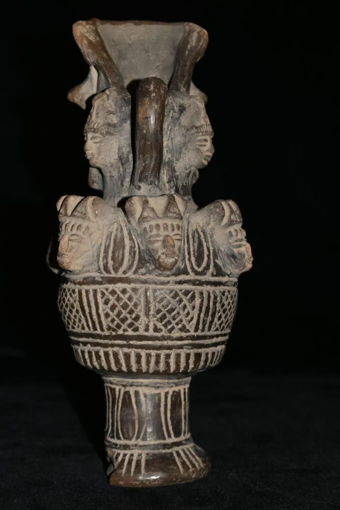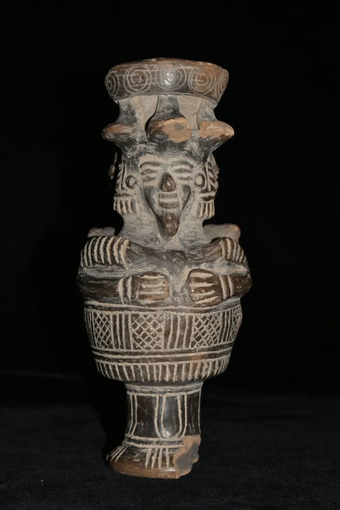 8 1/8" Pre Columbian Water Vase with Human Heads Condition: 100% Guaranteed Authentic via our Return Policy & Found on Private Property