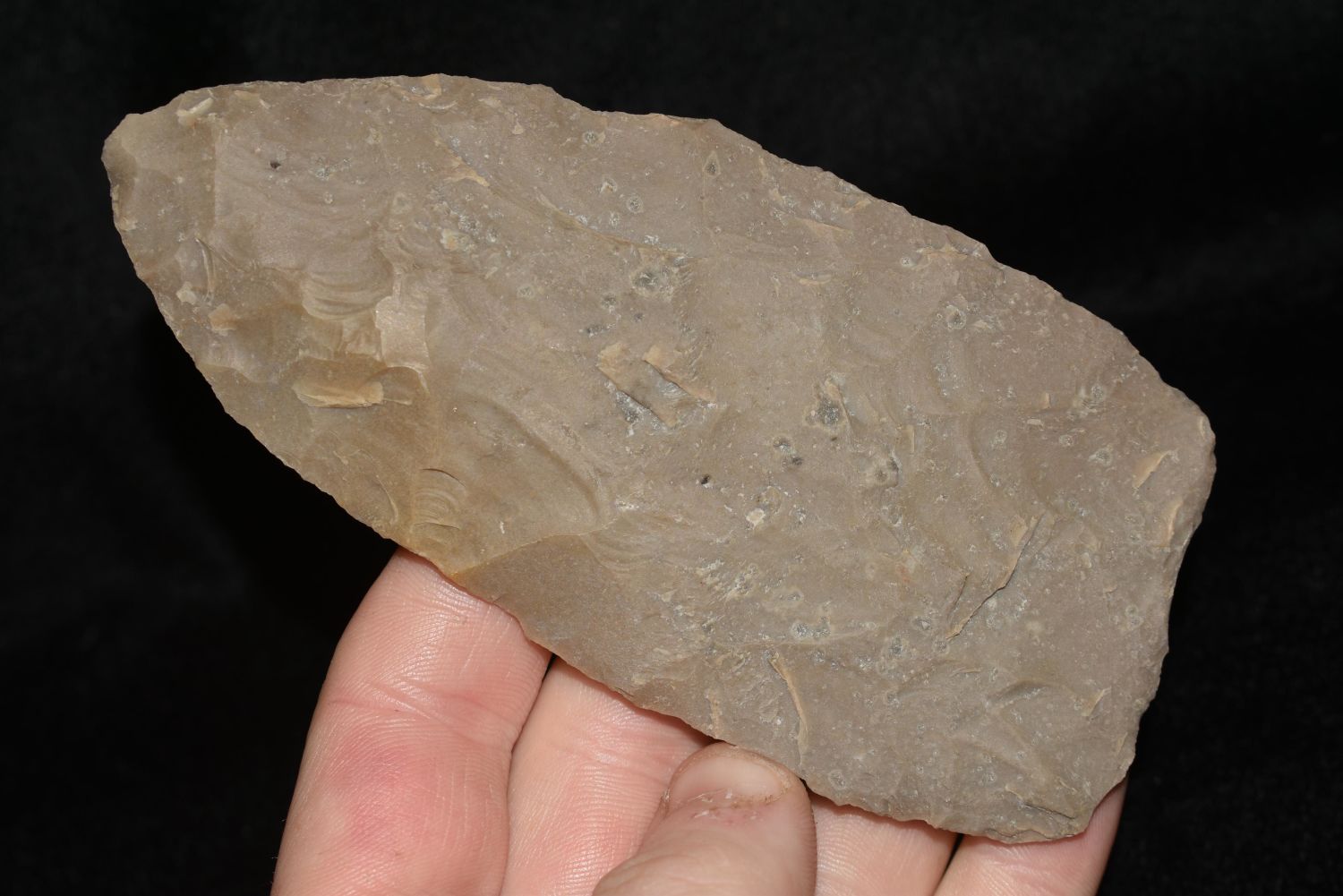 This collection was found and aqquaried by Raymond W. Burrell. Mr. Burrell resided in Montgomery Co., Georgia. He was a avid collector of Native American Artifacts. Many of these pieces are personal finds of his. He grew up in Alabama and hunted in the Warrior River area there as well.