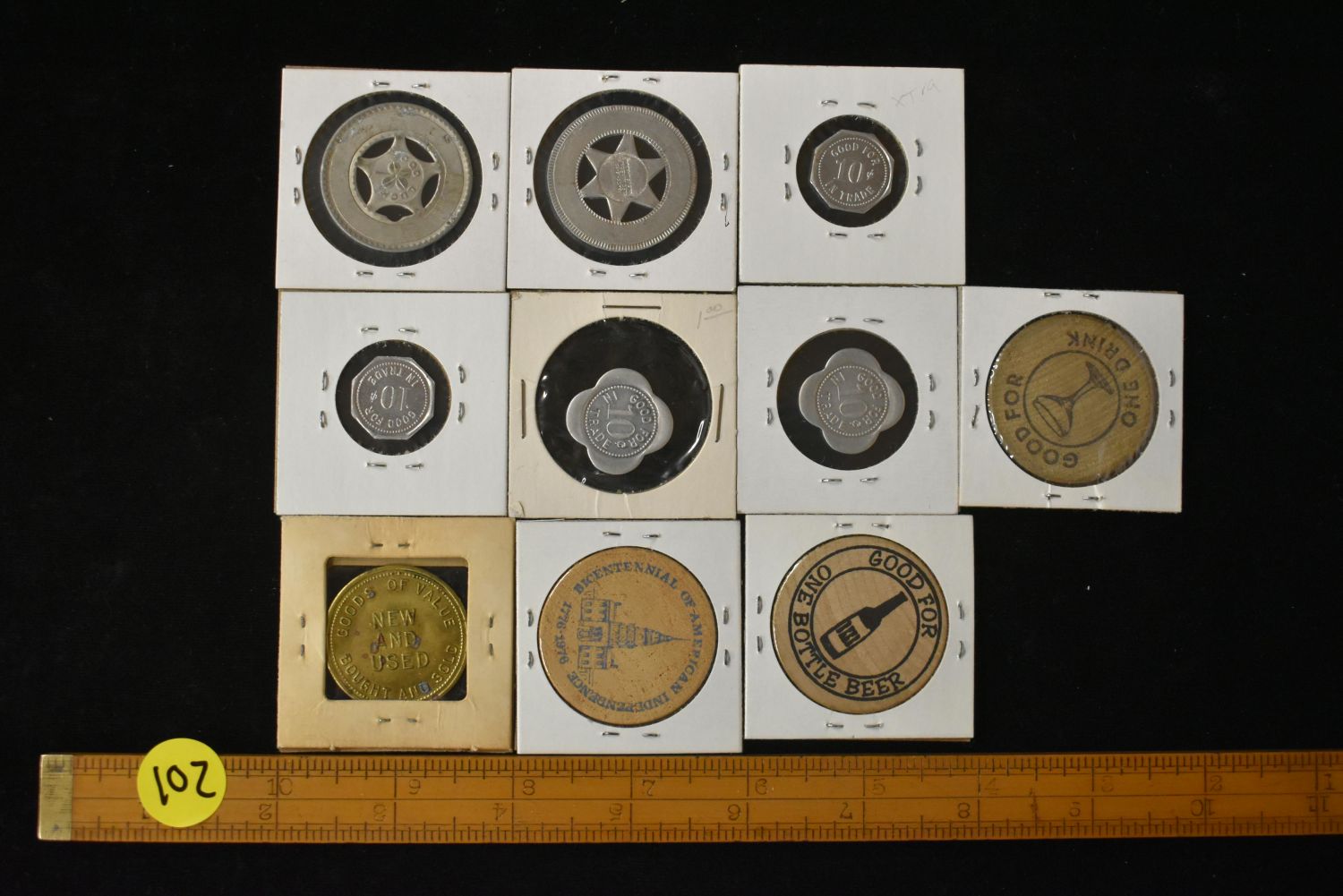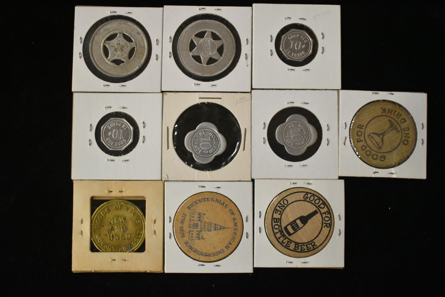 Lot of 10 Wooden and Metal Tokens Condition: 100% Guaranteed Authentic via our Return Policy & Found on Private Property