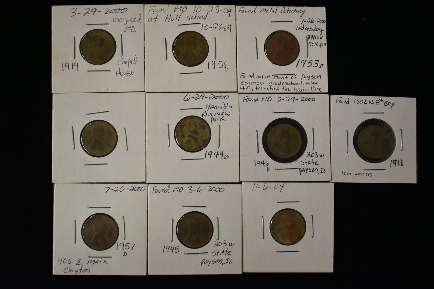 Lot of 10 Metal Detected Lincoln Head Pennies found near Quincy Illinois Condition: 100% Guaranteed Authentic via our Return Policy & Found on Private Property