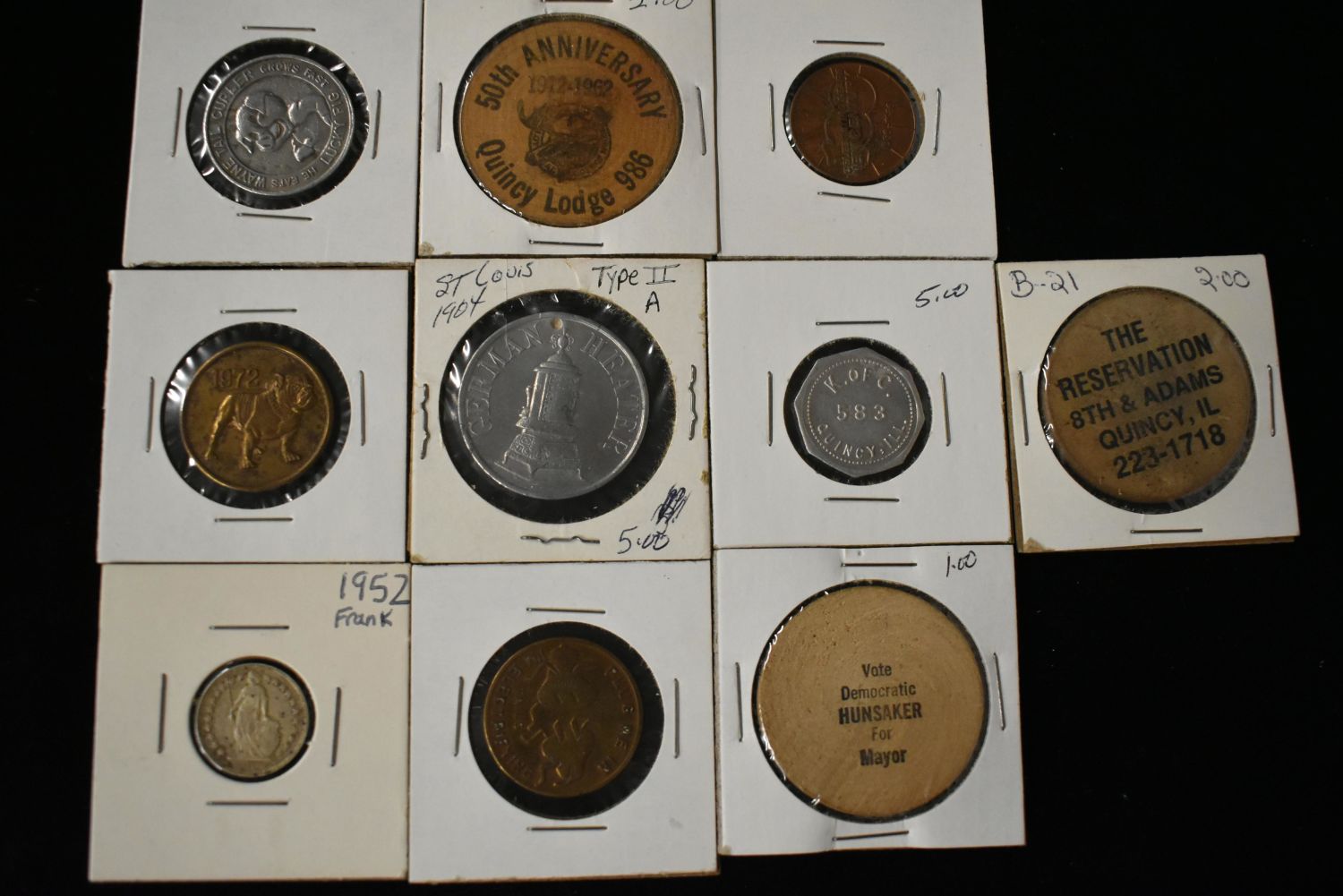 Lot of 10 Assorted Tokens from Quincy and Surrounding Areas